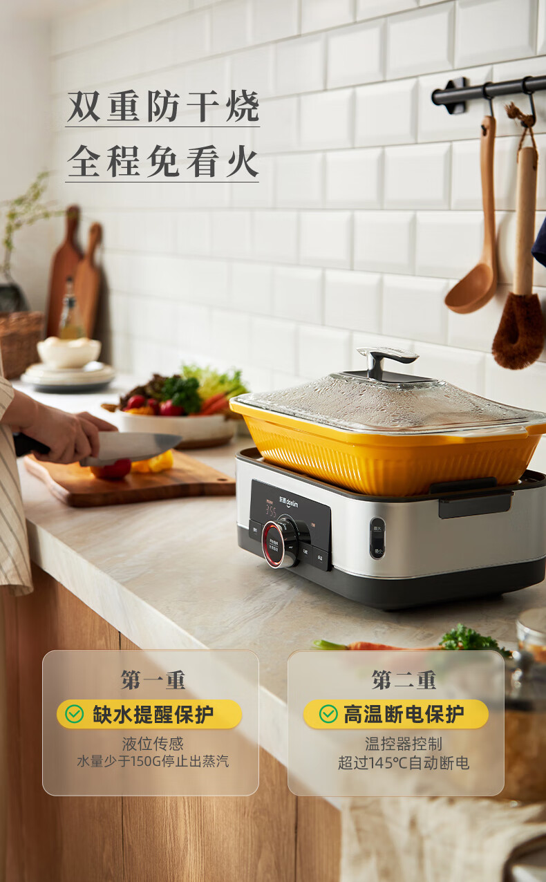 东菱(Donlim)电蒸锅炖蒸一体多功能蒸汽锅双层不锈钢 家用3-4人大容量陶瓷汽锅鸡高温速蒸预约保温蒸箱DL-1005 DL-1005/台