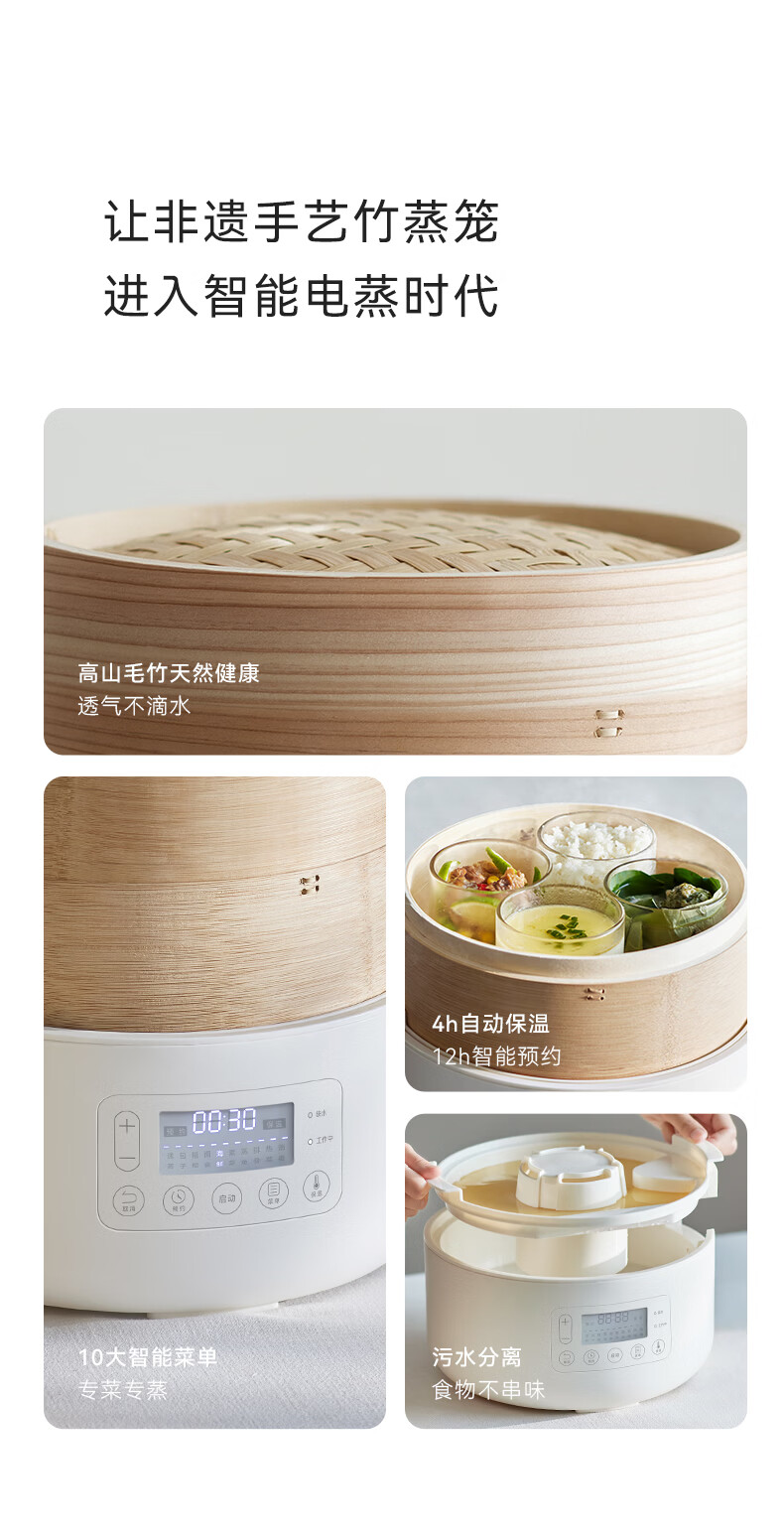 商品名称: olayks立时 竹木蒸笼蒸锅 竹云香竹笼电蒸锅 多功能早餐机家用 速热包子不滴水可定时预约保温升级款 2层 OLK-03-06/台