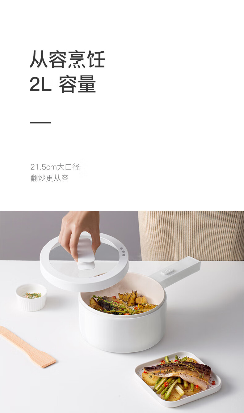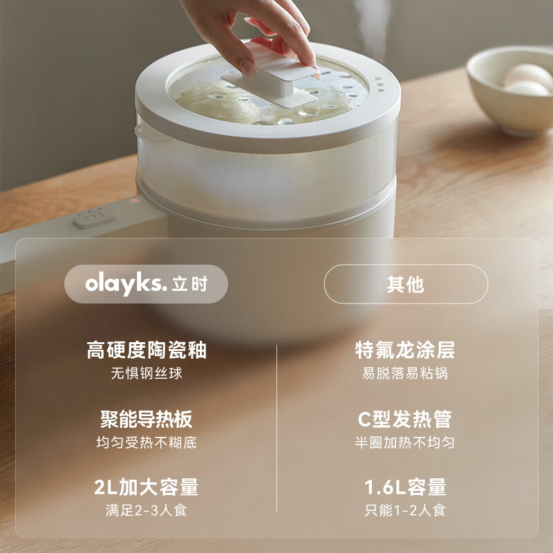 olayks立时 电煮锅多功能锅宿舍小电锅煎炒一体电热锅学生宿舍泡面电火锅电蒸锅 2L OLK-01-10/台
