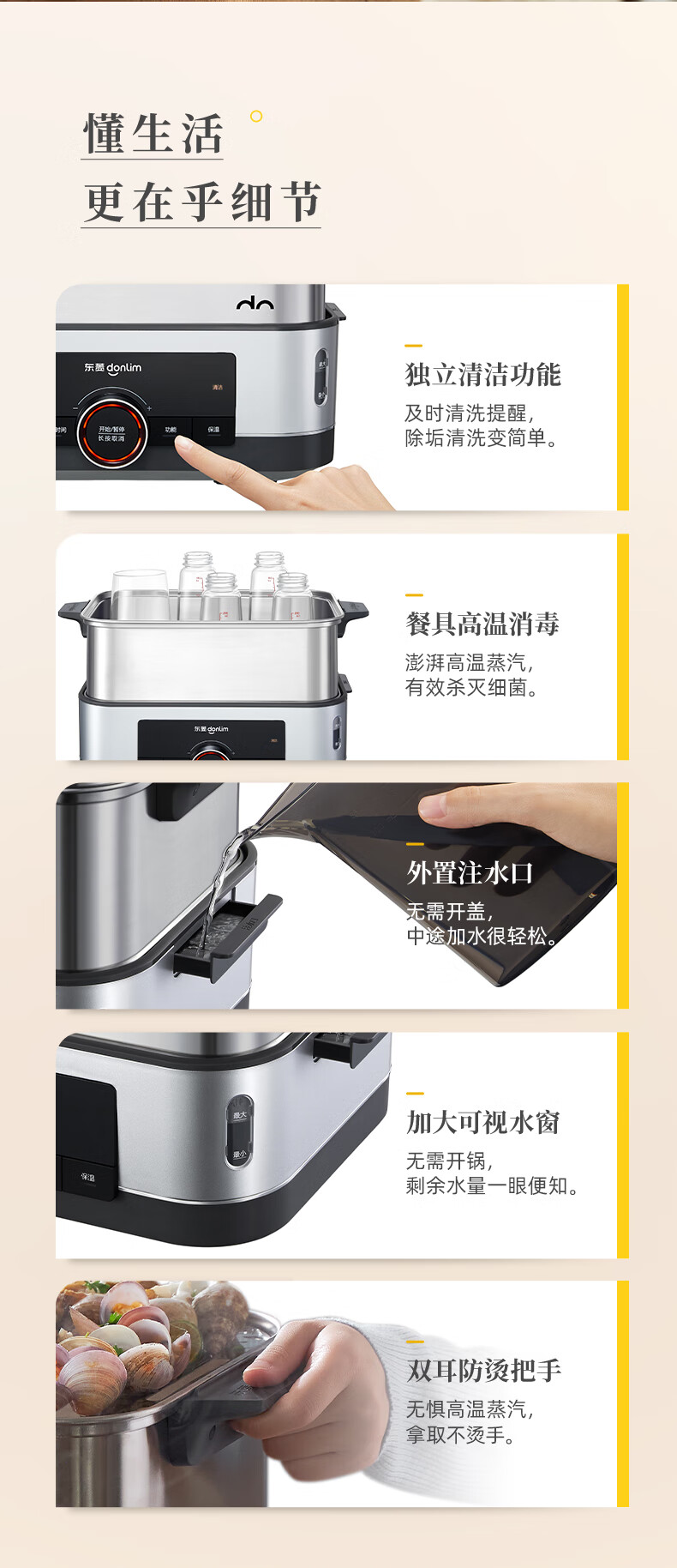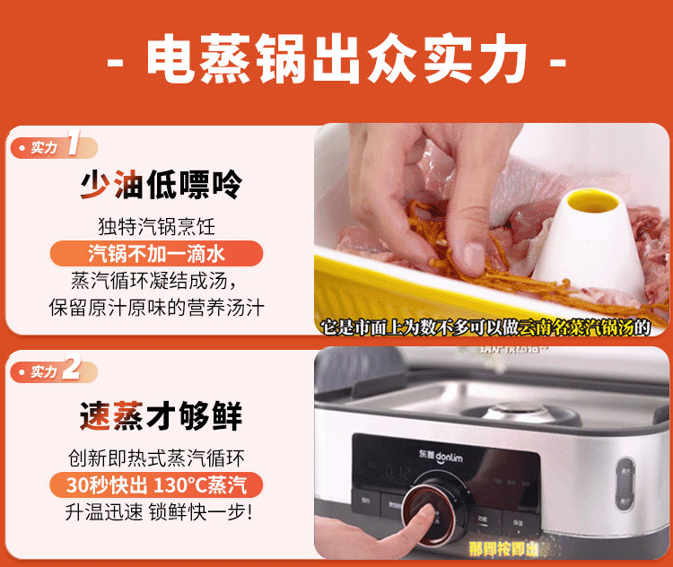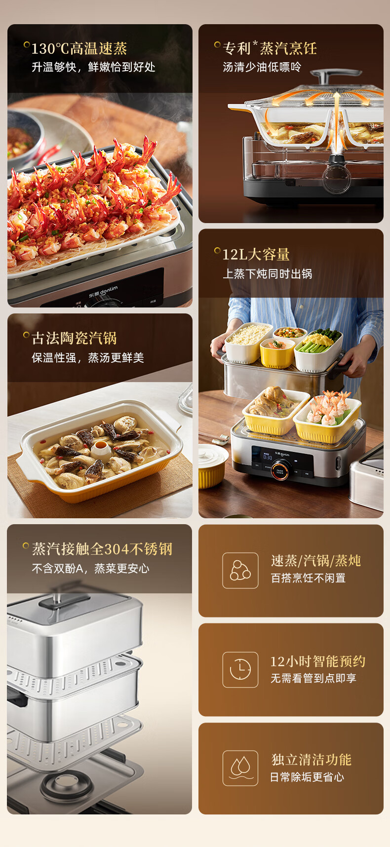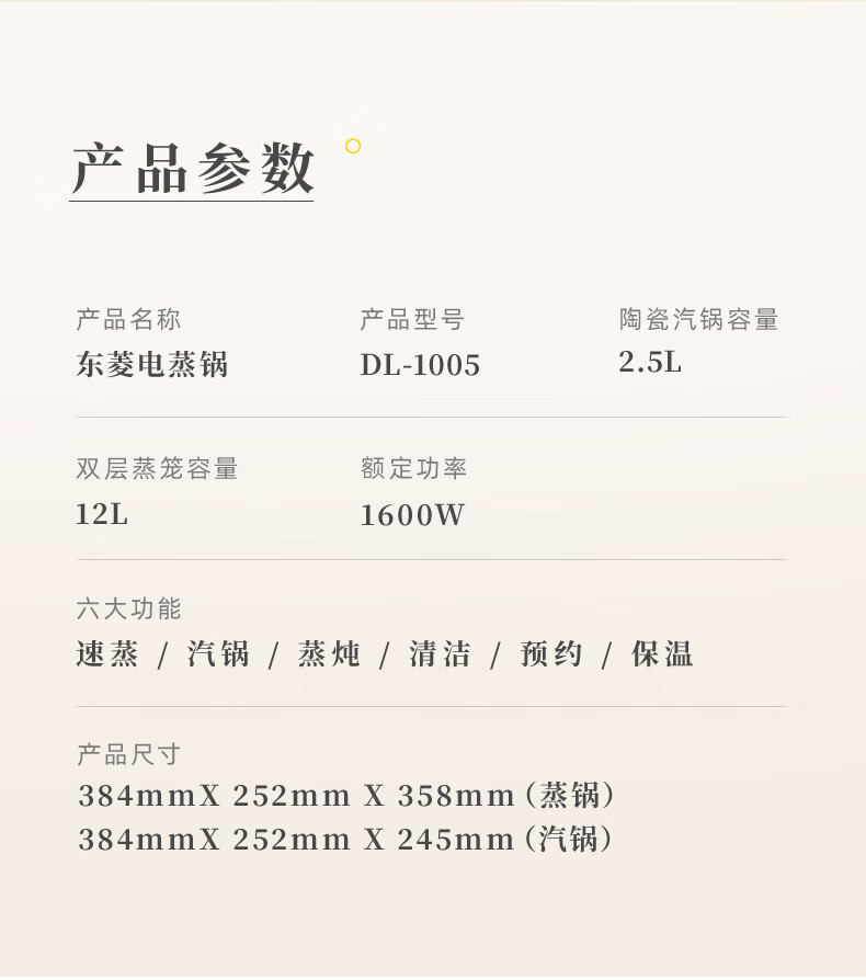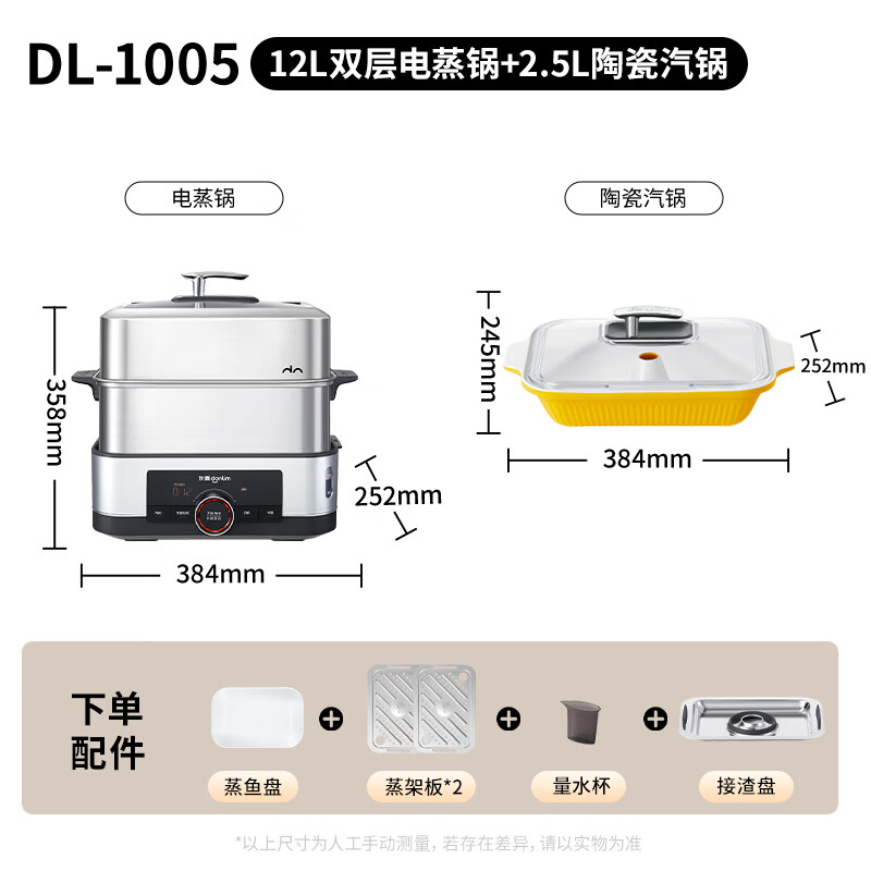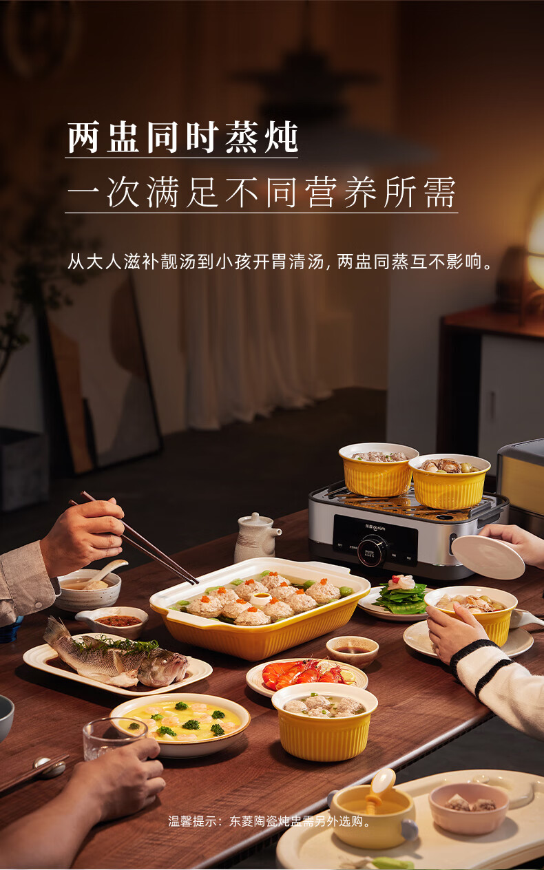 家用电器  > 厨房小电  > 多功能锅  >  东菱/Donlin  >  东菱(Donlim)电蒸锅炖蒸一体多功能蒸汽锅双层不锈钢 家用3-4人大容量陶瓷汽锅鸡高温速蒸预约保温蒸箱DL-1005 DL-1005/台