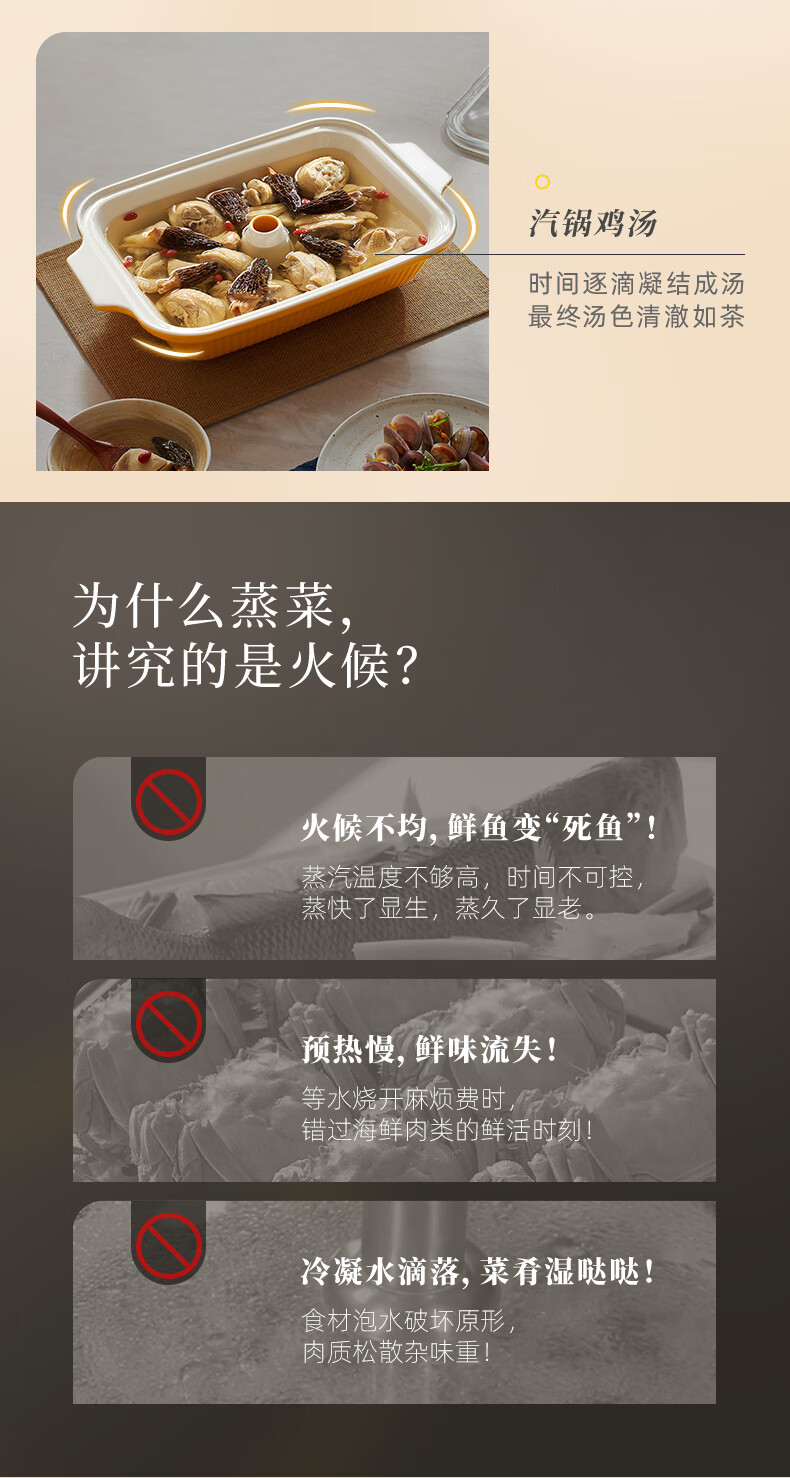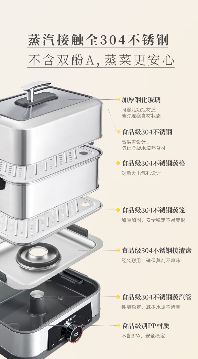 东菱(Donlim)电蒸锅炖蒸一体多功能蒸汽锅双层不锈钢 家用3-4人大容量陶瓷汽锅鸡高温速蒸预约保温蒸箱DL-1005 DL-1005/台