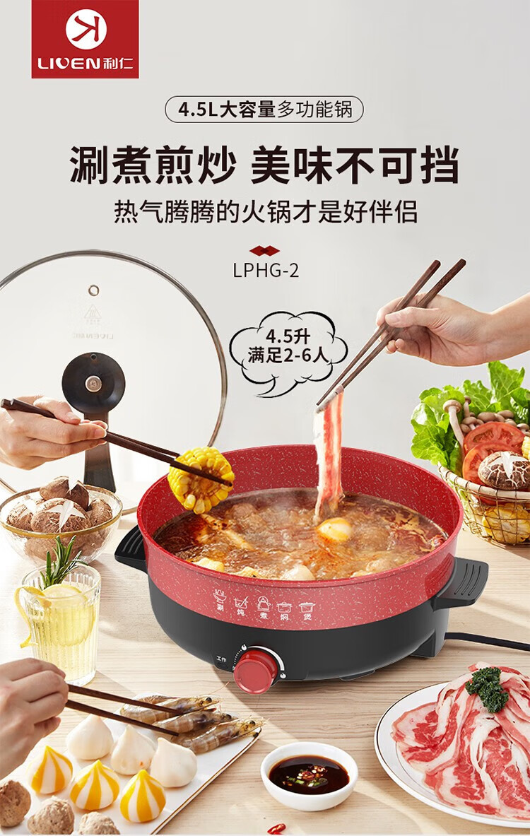 家用电器  > 厨房小电  > 多功能锅  >  利仁/liven  >  利仁(Liven)家用电火锅 电热锅 多用途电煮锅料理锅LPHG-339 LPHG-339/个