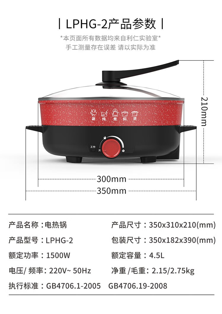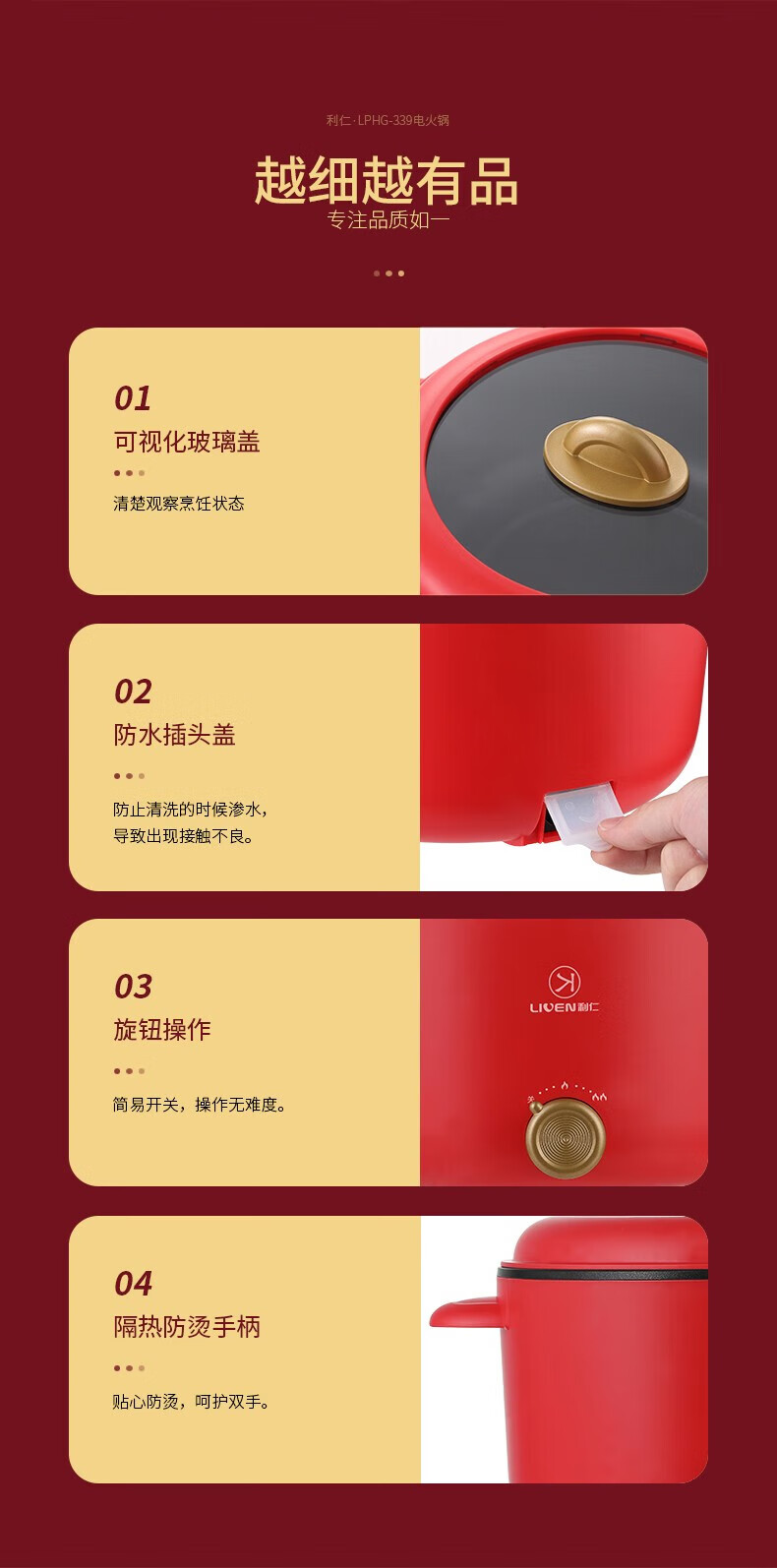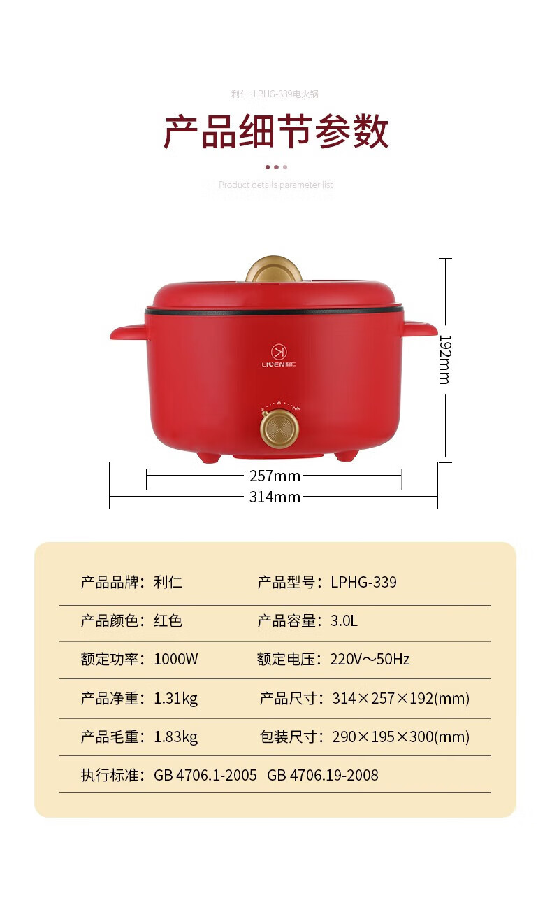 • 商品名称:利仁(Liven)家用电火锅 电热锅 多用途电煮锅料理锅LPHG-339 LPHG-339/个