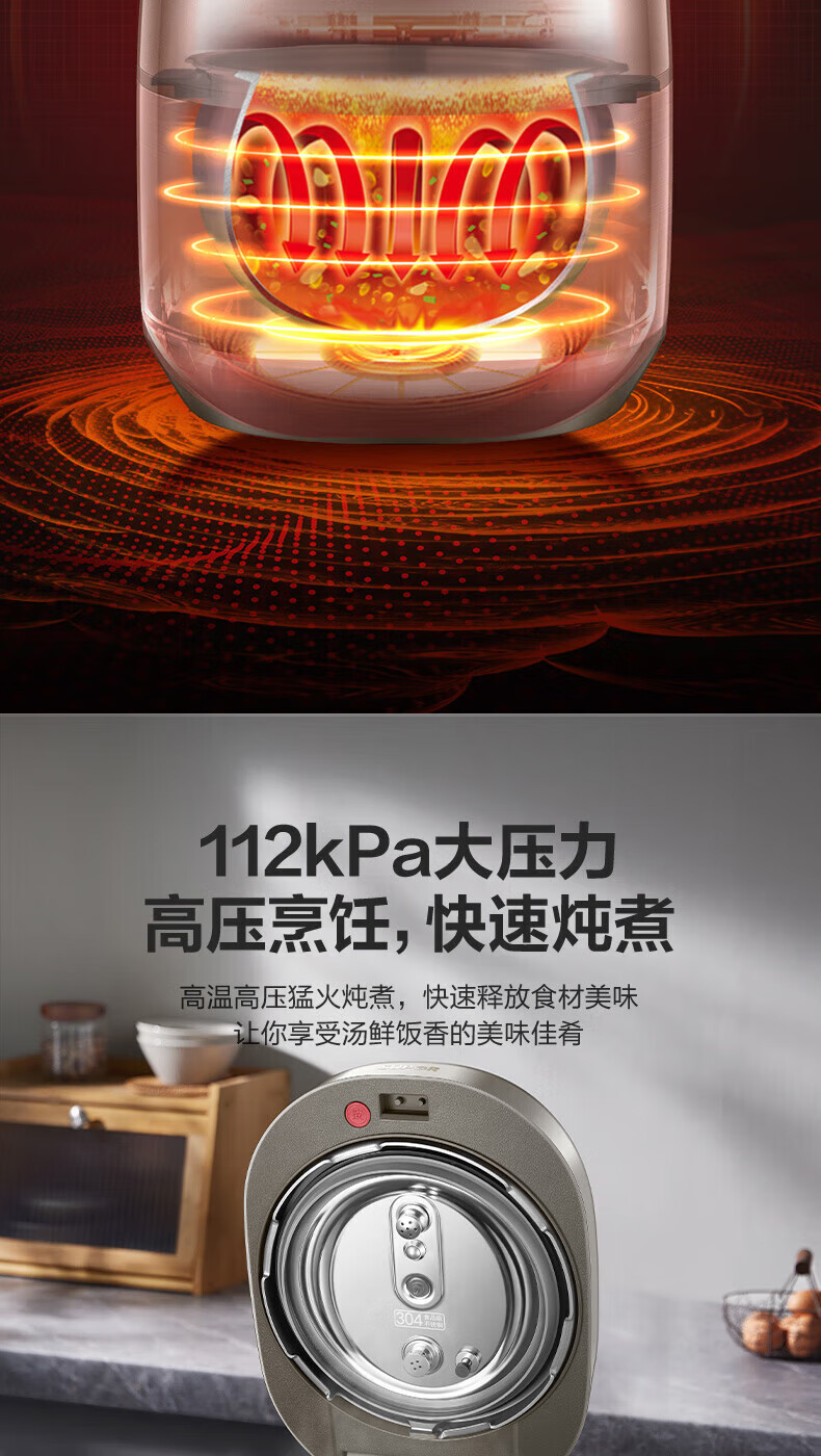 商品名称: 苏泊尔(SUPOR)快排100系列电压力锅5L 112kpa 鲜呼吸IH加热 2200W精钢球釜 SY-50FH79Q双胆高压锅3-6人 SY-50FH79Q/台