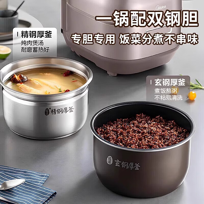 商品名称: 美的(Midea)电压力锅IH速嫩感 0涂层高压锅5升家用煲汤智能预约电饭煲自动排气健康钢胆 MY-S5879K MY-S5879K/台