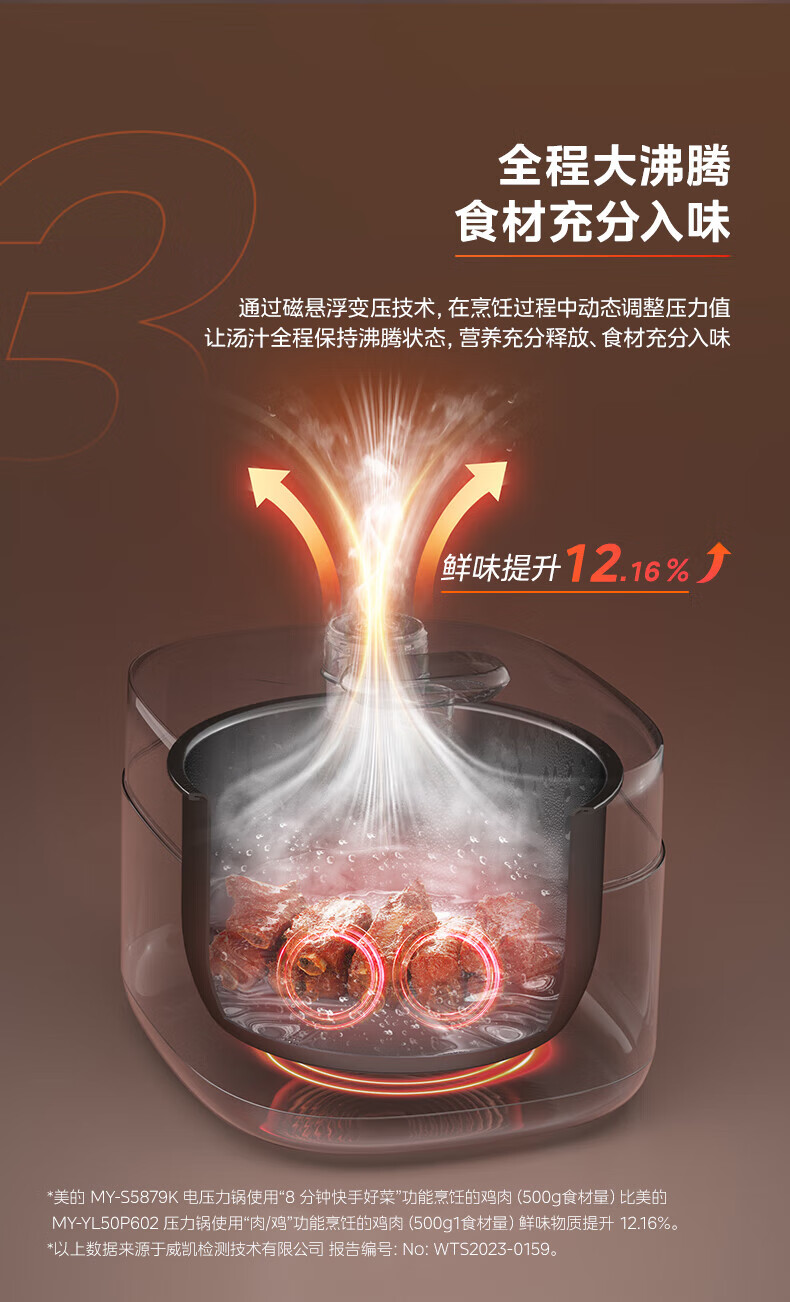• 商品名称:美的(Midea)电压力锅IH速嫩感 0涂层高压锅5升家用煲汤智能预约电饭煲自动排气健康钢胆 MY-S5879K MY-S5879K/台