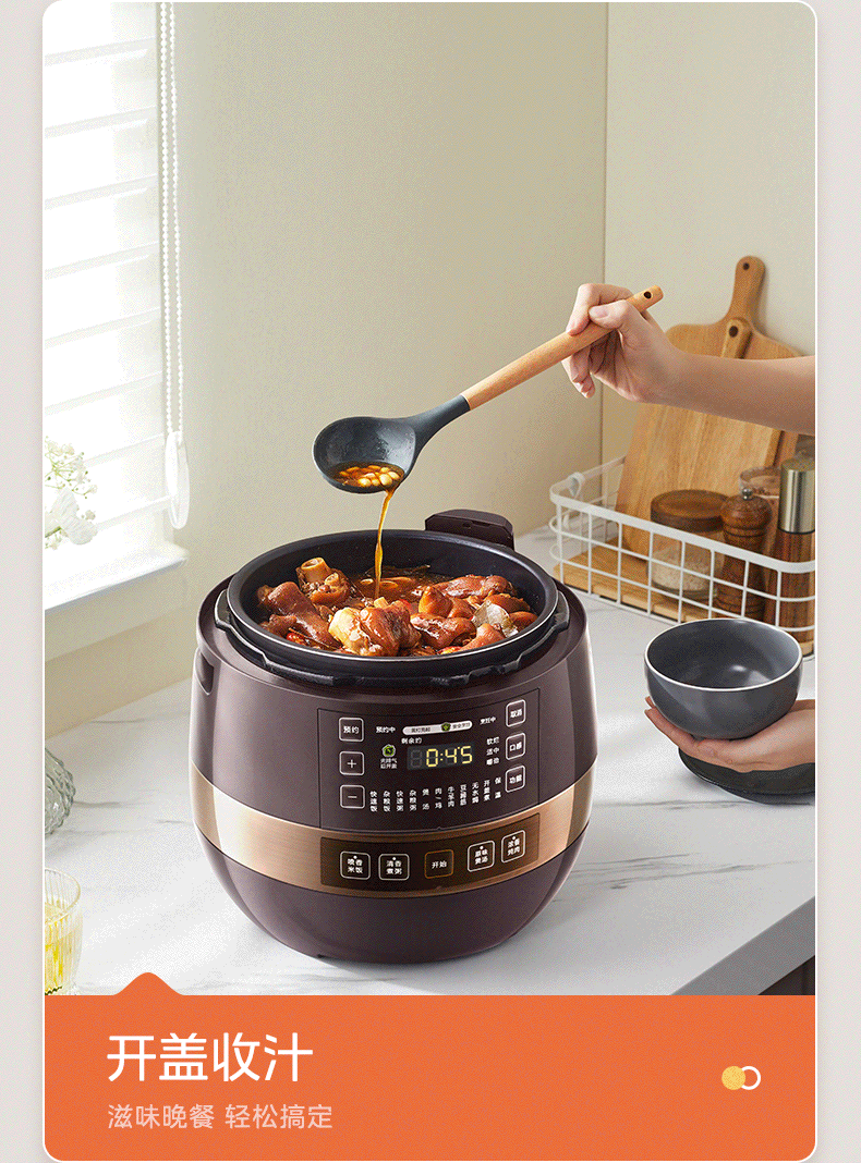 商品名称: 美的(Midea)品牌官方全自动智能预约电压力锅6L大容量家用双胆煲汤电饭煲60Easy203多功能高压锅4-6人 MY-YL60Easy203/台