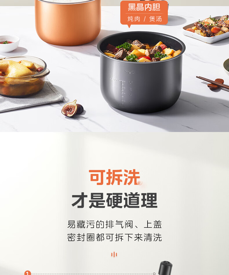 包装清单: 说明书*1、合格证*1、内胆*2、整机*1、多用勺*1、蓄水盒*1