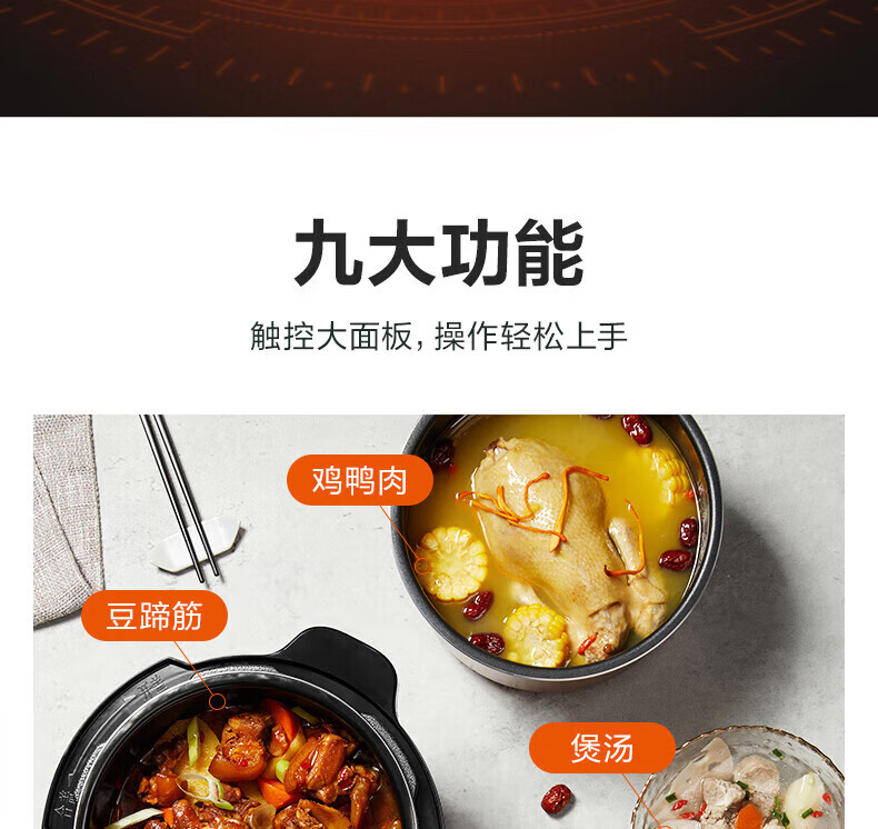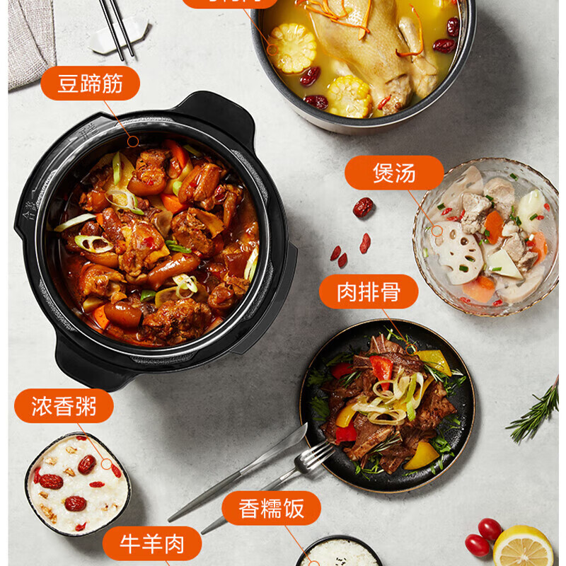 商品名称: 苏泊尔电压力锅6L全自动智能预约家用煲汤多功能面板易清洁双内胆压力锅电饭煲高压锅4-8人SY-60YC16 SY-60YC16/个