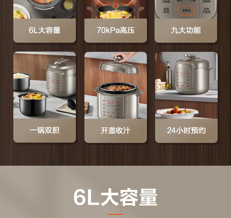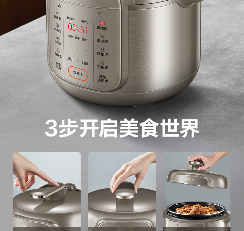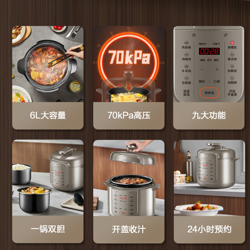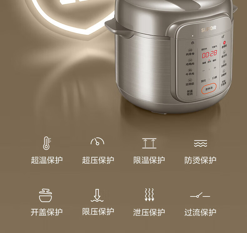家用电器  > 厨房小电  > 电压力锅  >  苏泊尔/SUPOR  >  苏泊尔电压力锅6L全自动智能预约家用煲汤多功能面板易清洁双内胆压力锅电饭煲高压锅4-8人SY-60YC16 SY-60YC16/个