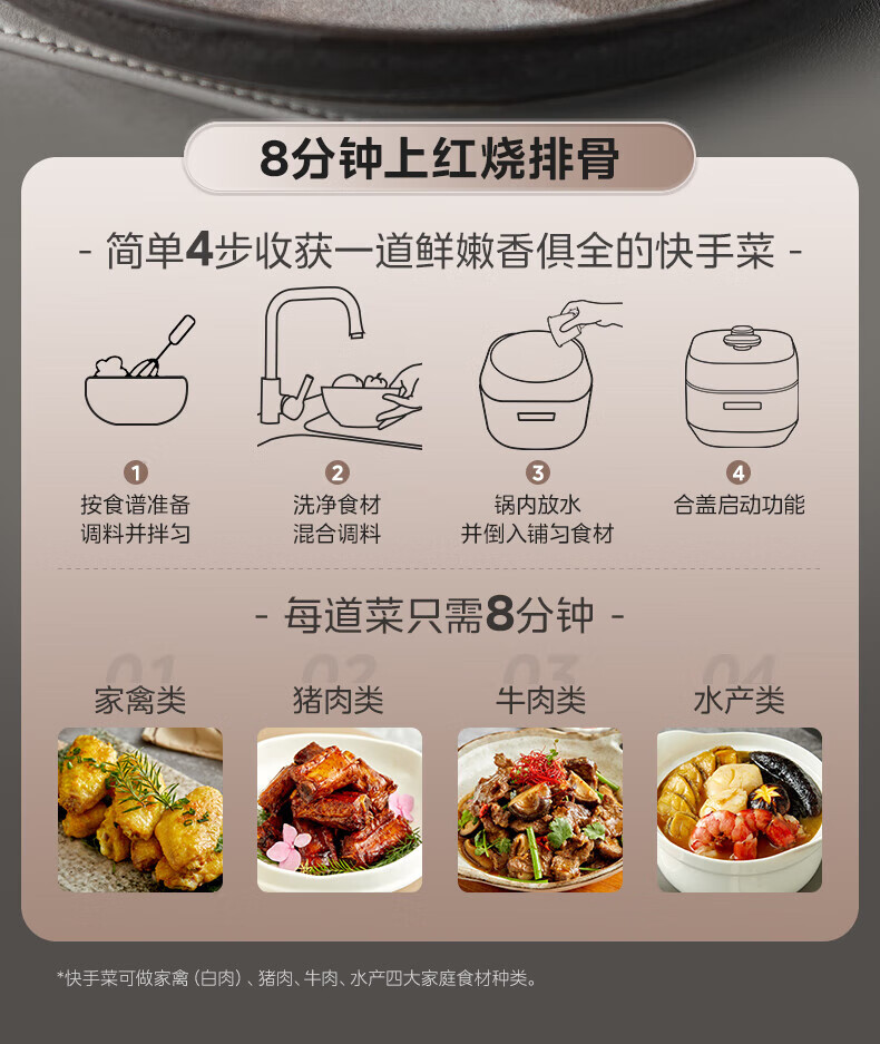 美的(Midea)电压力锅IH速嫩感 0涂层高压锅5升家用煲汤智能预约电饭煲自动排气健康钢胆 MY-S5879K MY-S5879K/台