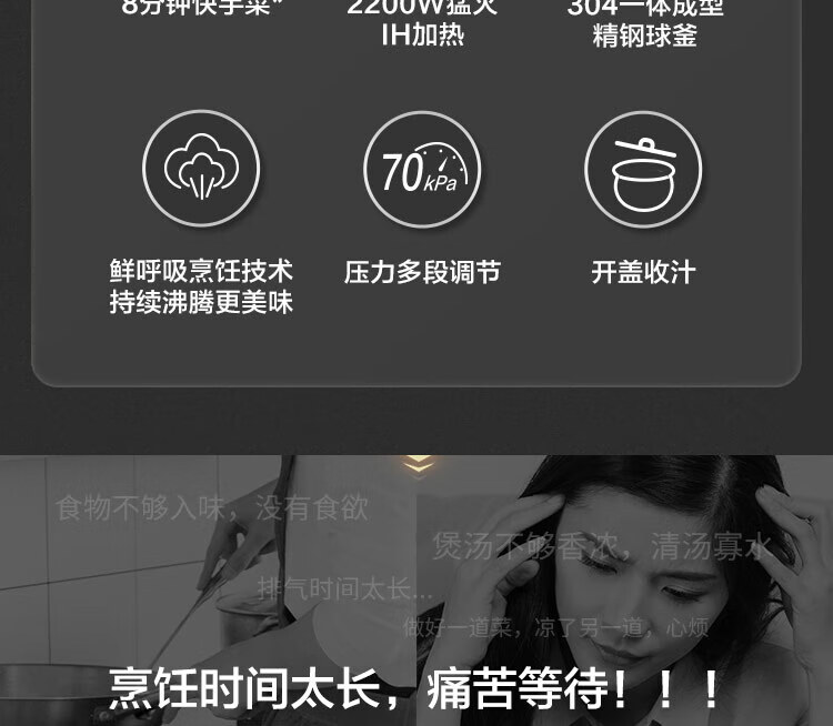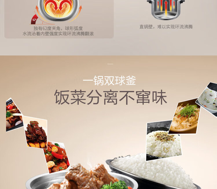 苏泊尔电压力锅5L精钢球釜智能鲜呼吸多功能高压锅家用SY-50FH75Q SY-50FH75Q/台