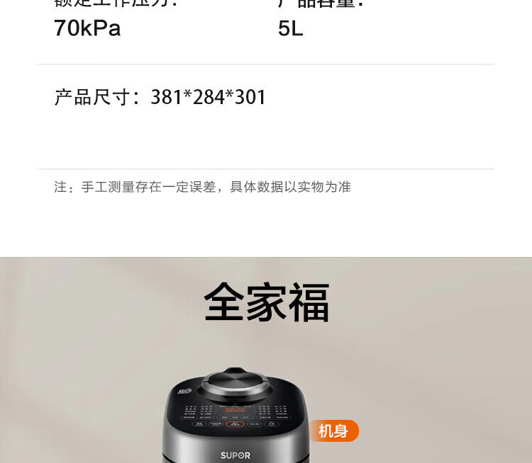 家用电器  > 厨房小电  > 电压力锅  >  苏泊尔/SUPOR  >  苏泊尔电压力锅5L精钢球釜智能鲜呼吸多功能高压锅家用SY-50FH75Q SY-50FH75Q/台