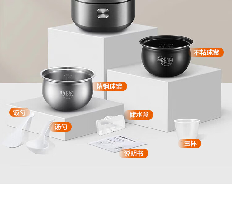 包装清单: 量杯、说明书、饭勺、主机、汤勺、电源线