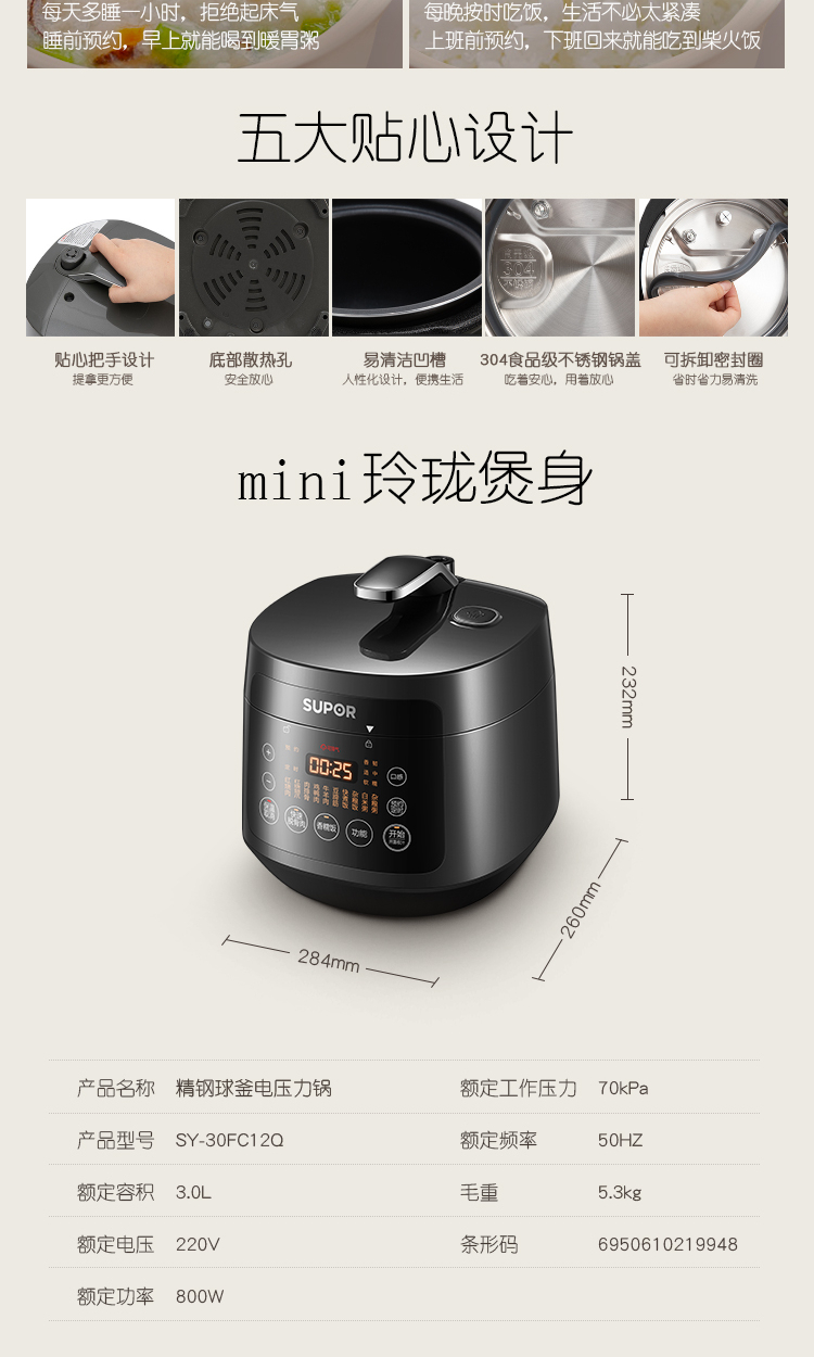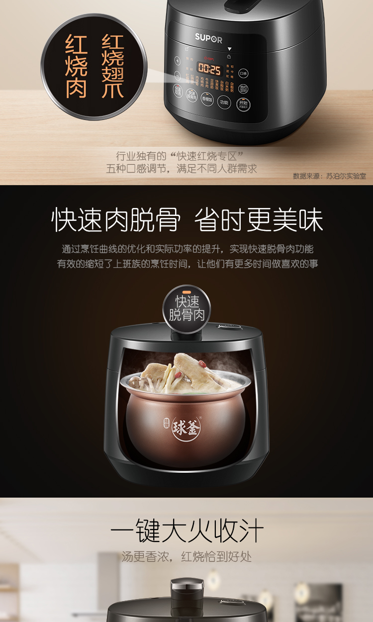 • 商品名称:苏泊尔(SUPOR)电压力锅家用3L多功能精钢球釜高压锅煮饭锅 一锅双胆 智能预约 SY-30FC12Q SY-30FC12Q/台