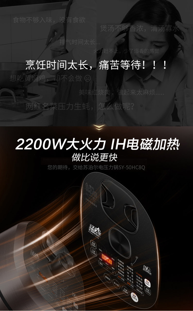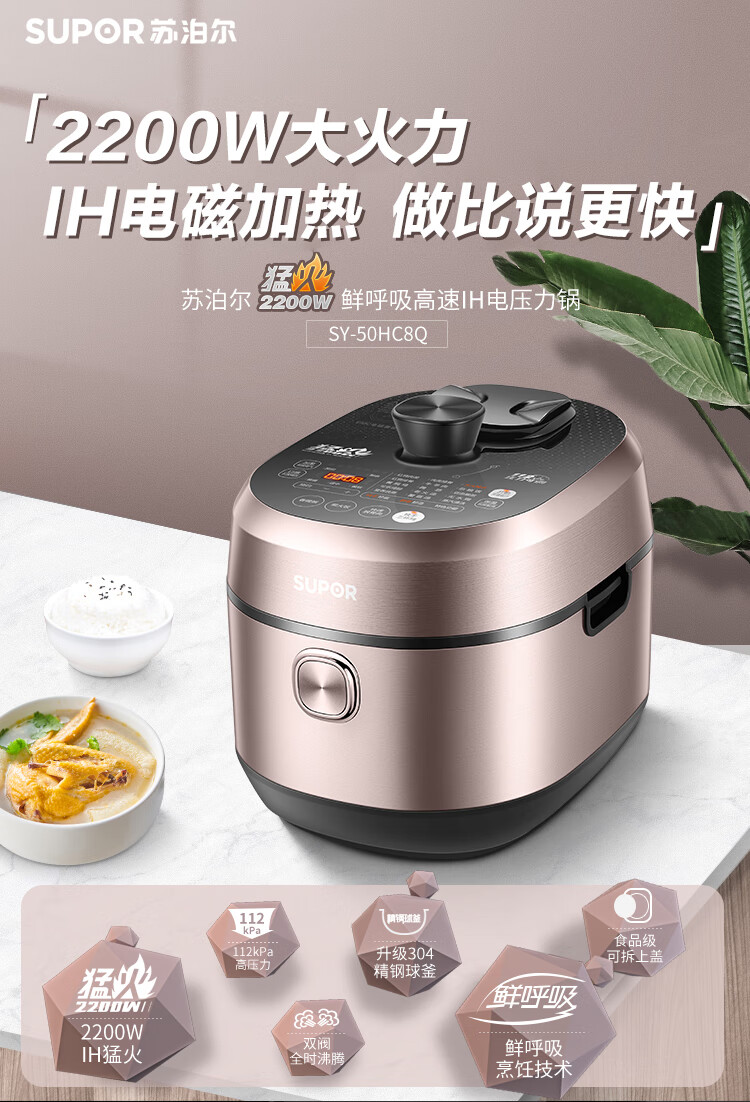 • 商品名称:苏泊尔(SUPOR)SY-50HC8Q电压力锅 112kpa智能鲜呼吸IH电磁加热5L球釜双内胆 SY-50HC8Q 支持一件代发 SY-50HC8Q/台