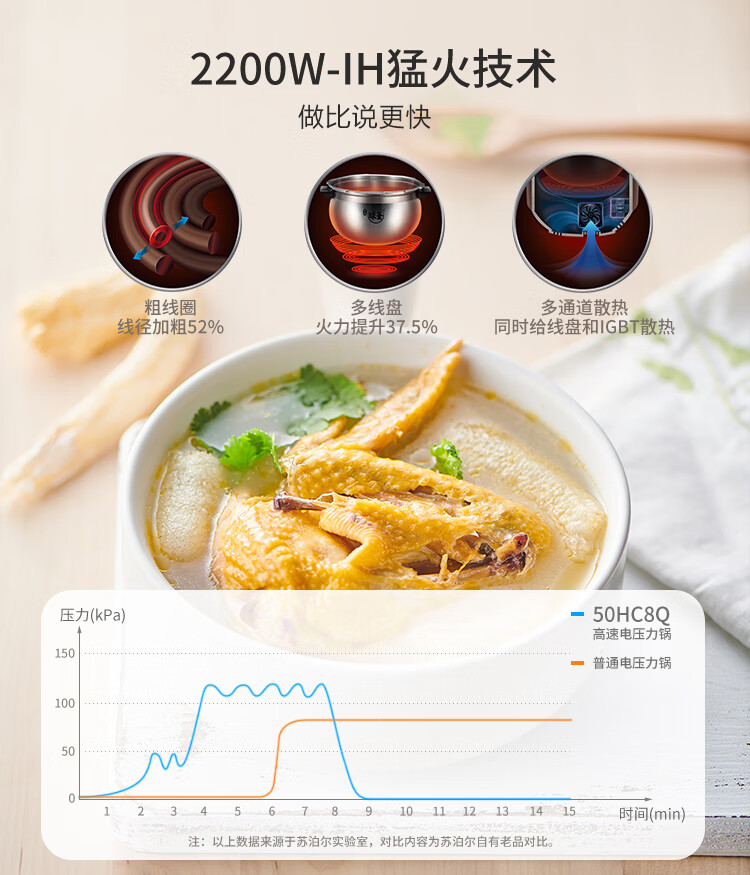 商品名称: 苏泊尔(SUPOR)SY-50HC8Q电压力锅 112kpa智能鲜呼吸IH电磁加热5L球釜双内胆 SY-50HC8Q 支持一件代发 SY-50HC8Q/台