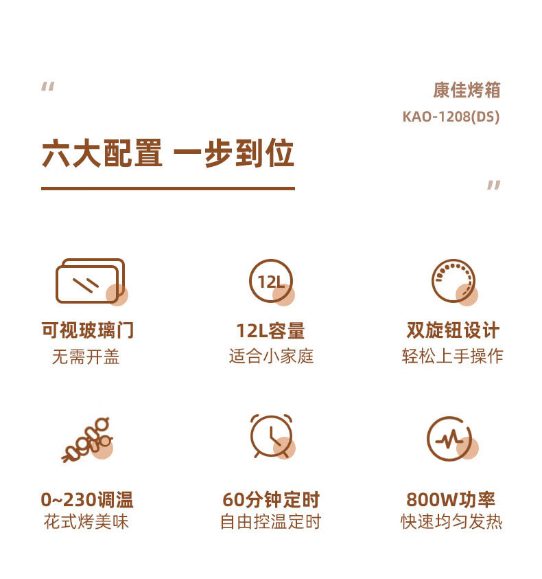 • 商品名称:康佳(KONKA)电烤箱家用一机多能迷你小烤箱风炉 12L容量小型电烤炉 KAO-1208(DS) KAO-1208(D)S/台