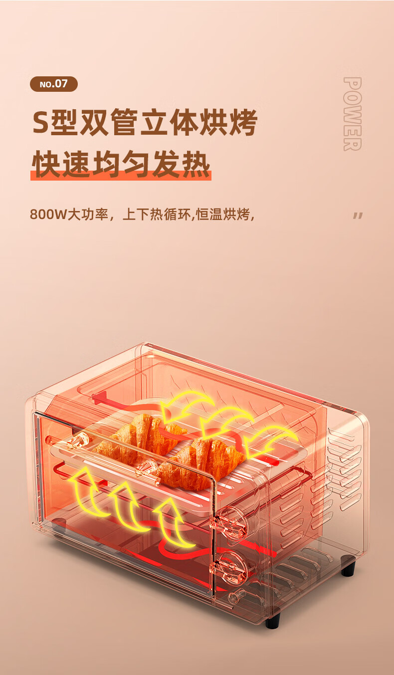 康佳(KONKA)电烤箱家用一机多能迷你小烤箱风炉 12L容量小型电烤炉 KAO-1208(DS) KAO-1208(D)S/台