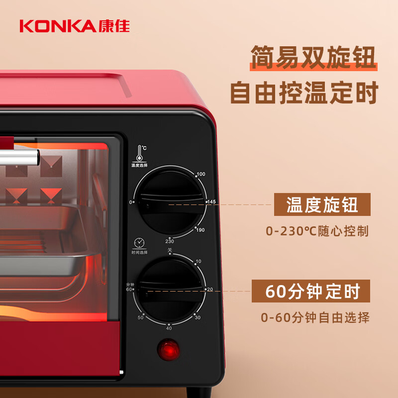 康佳(KONKA)电烤箱家用一机多能迷你小烤箱风炉 12L容量小型电烤炉 KAO-1208(DS) KAO-1208(D)S/台