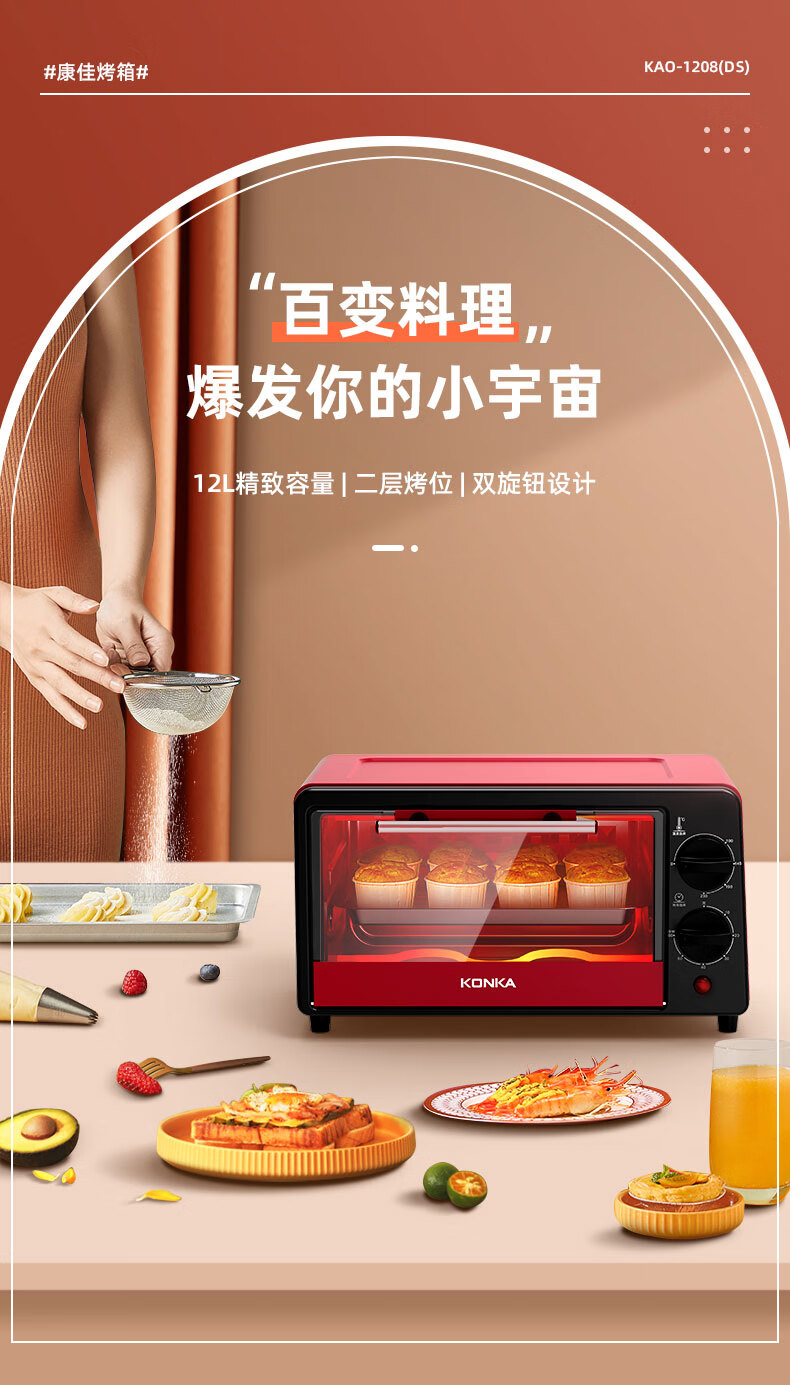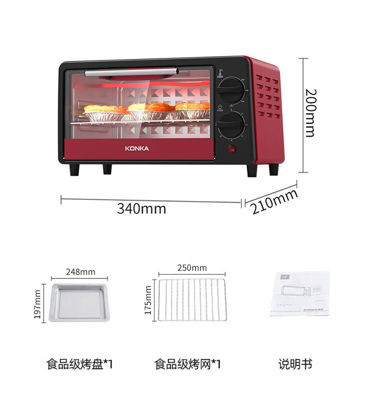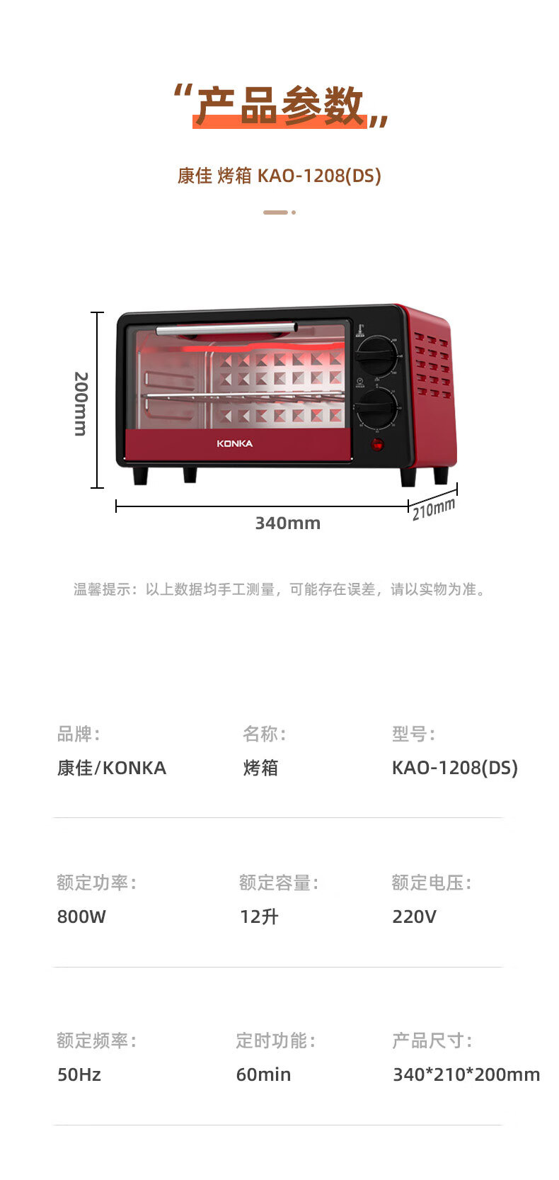 • 商品名称:康佳(KONKA)电烤箱家用一机多能迷你小烤箱风炉 12L容量小型电烤炉 KAO-1208(DS) KAO-1208(D)S/台