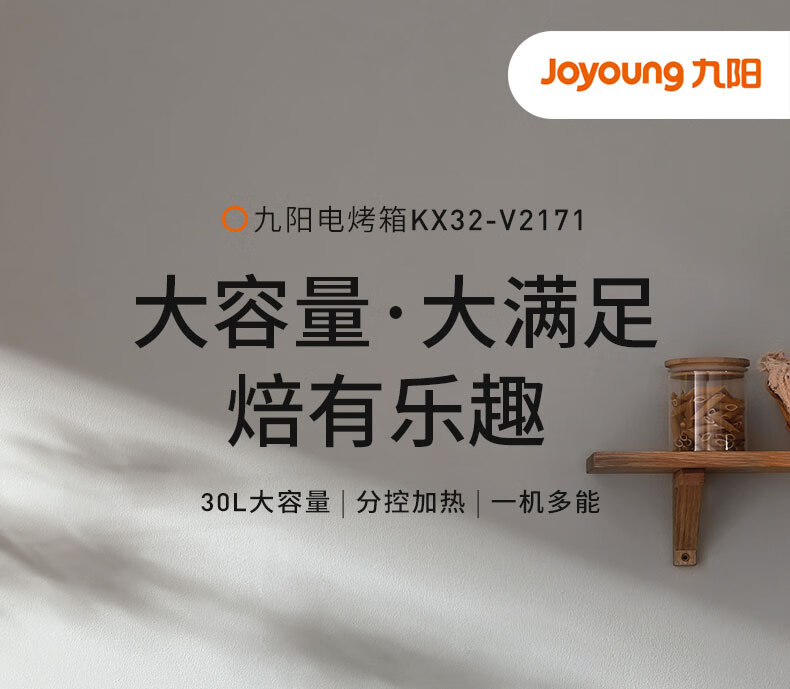 家用电器  > 厨房小电  > 电烤箱  >  九阳/Joyoung  >  九阳(Joyoung)电烤箱家用多功能专业30L大容量烘焙电烤箱精准定时控温专业烘焙易操作KX32-V2171 KX32-V2171/台
