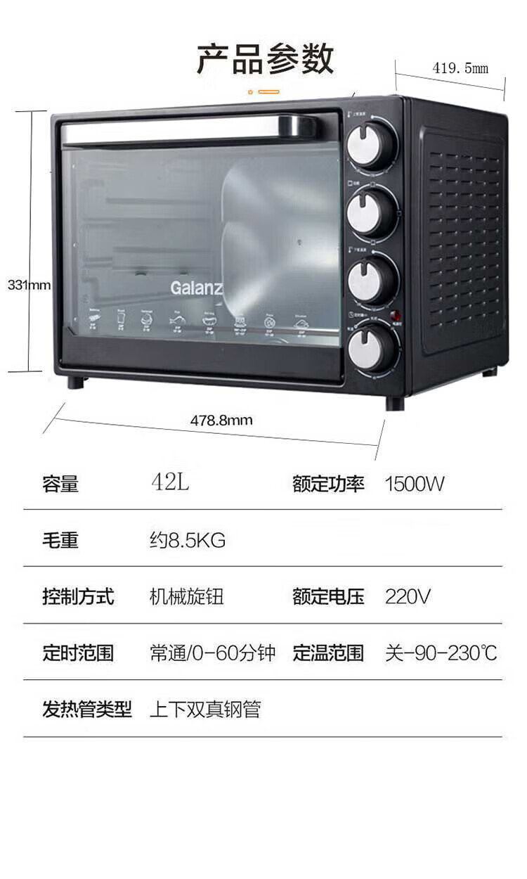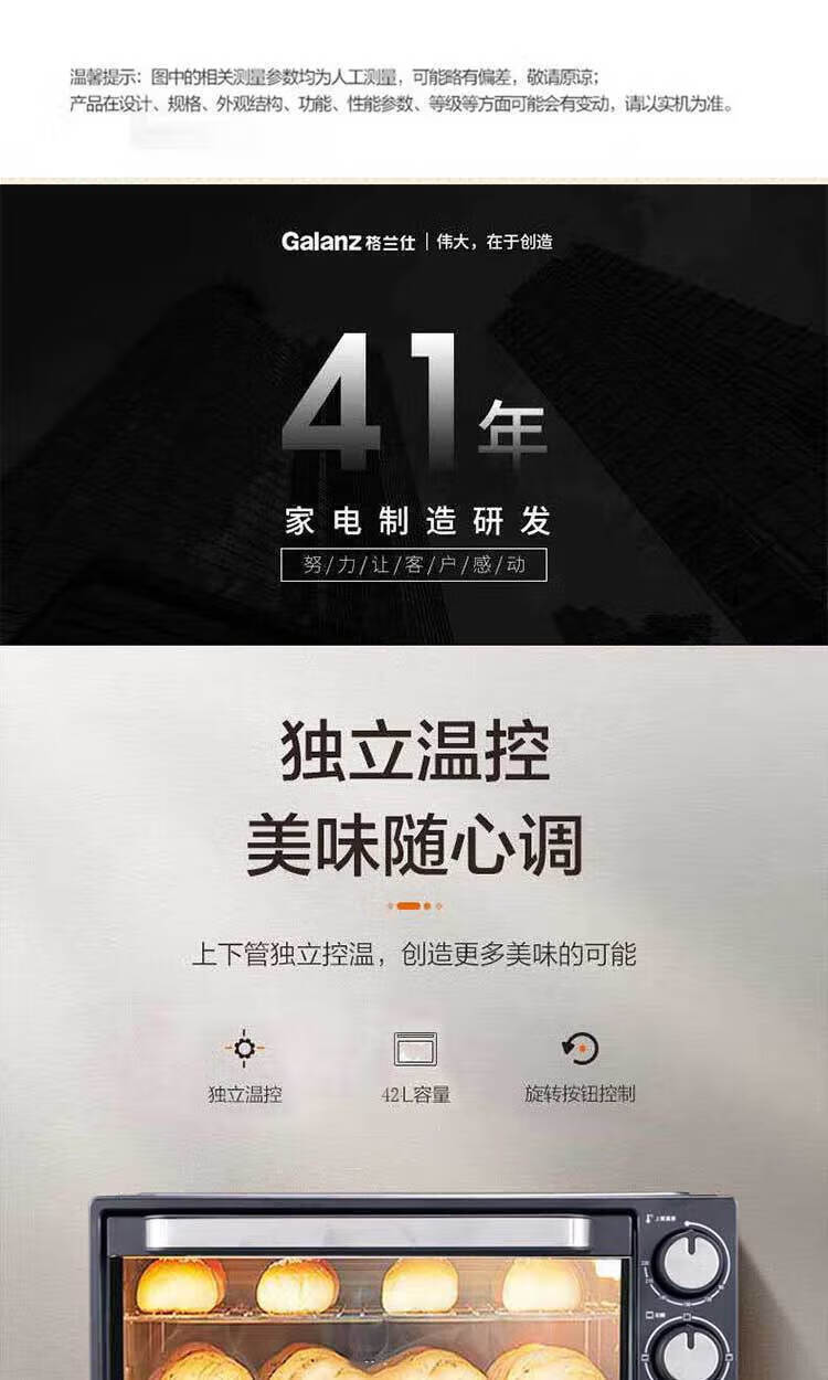 • 商品名称:格兰仕Galanz TQH-42B 电烤箱 42升超大容量 上下独立控温复古高颜值烤箱 TQH-42B/个