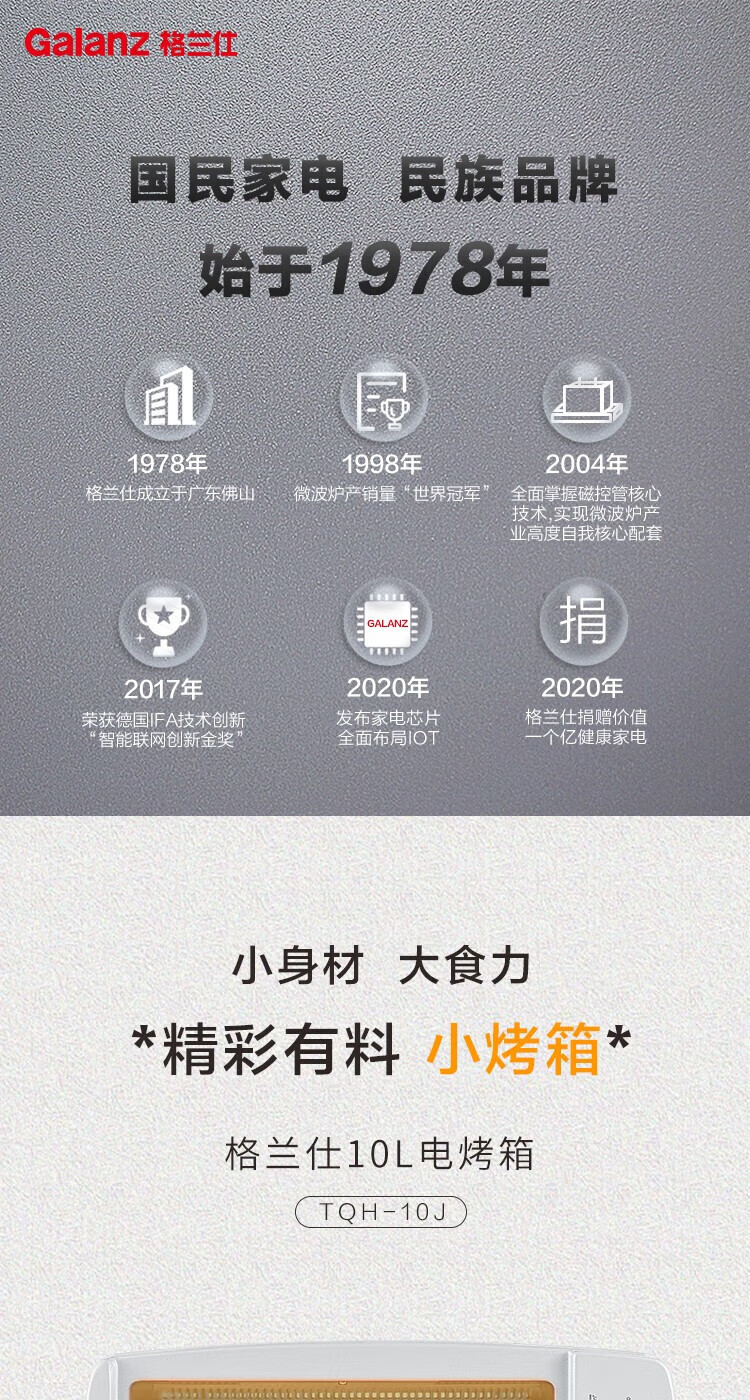 商品名称: 格兰仕(Galanz)电烤箱 TQH-10J 10L(台) TQH-10J/台