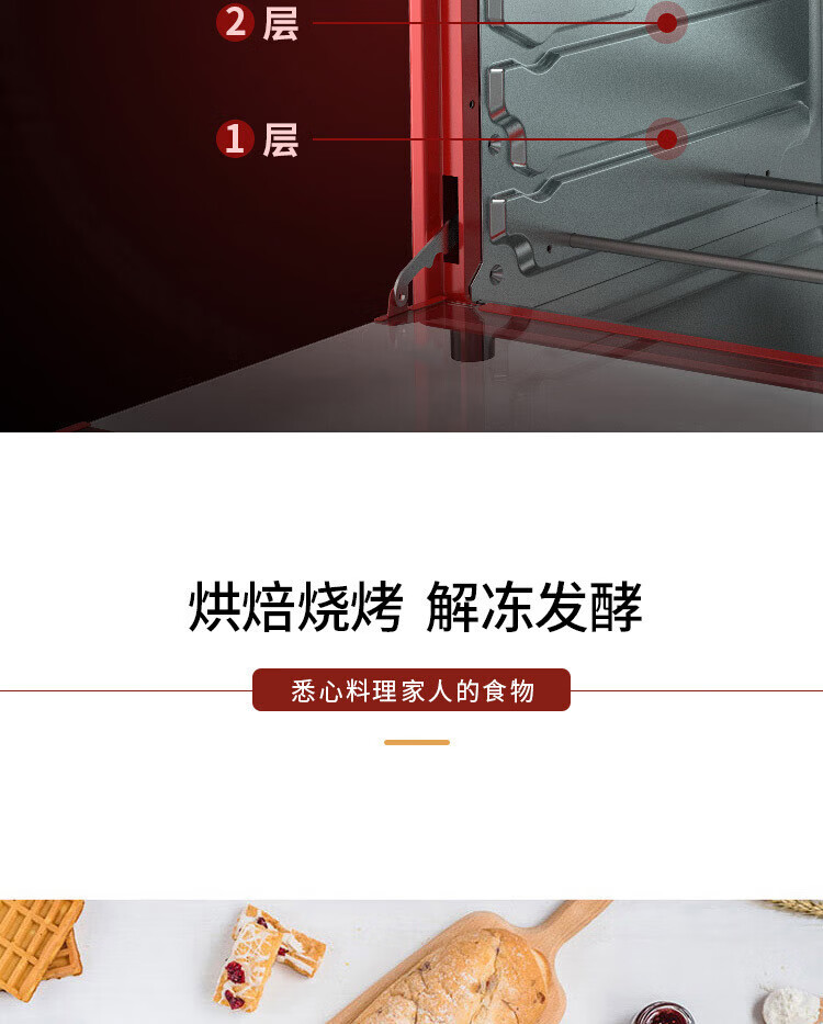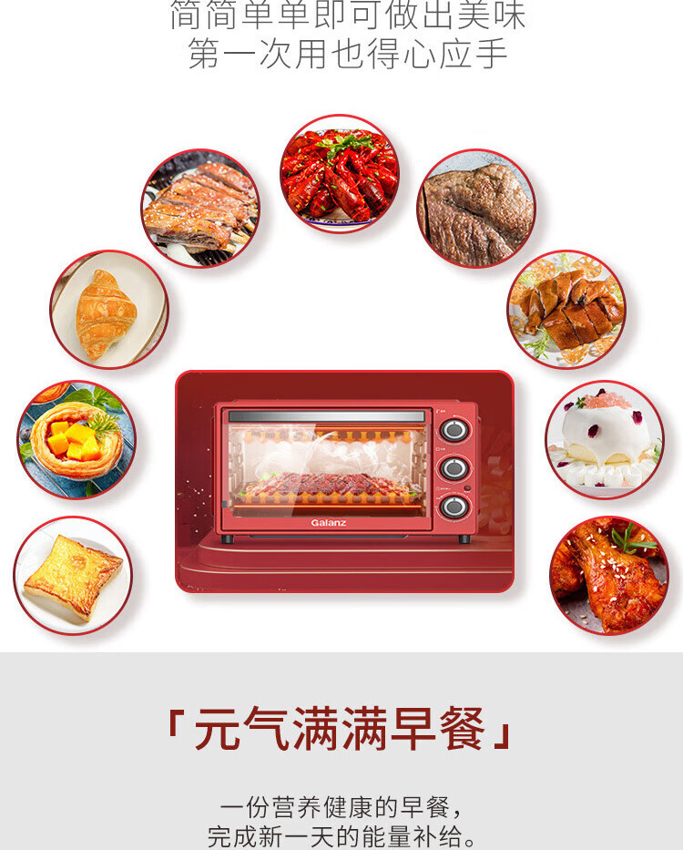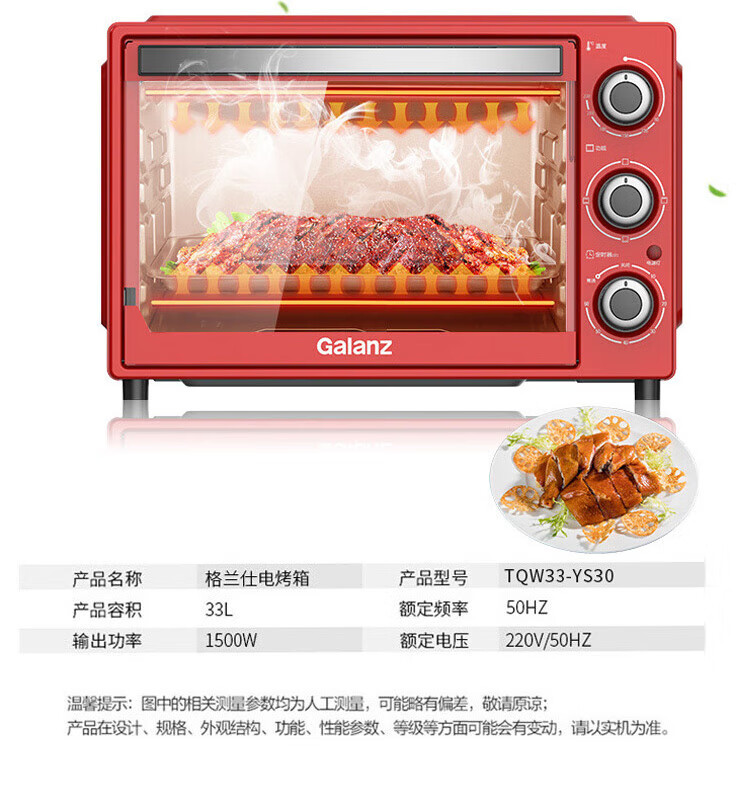 • 商品名称:格兰仕(Galanz)电烤箱33L大容量宽屏控温多层烤位电烤箱上下管加热 YS30 TQW33-YS30/台
