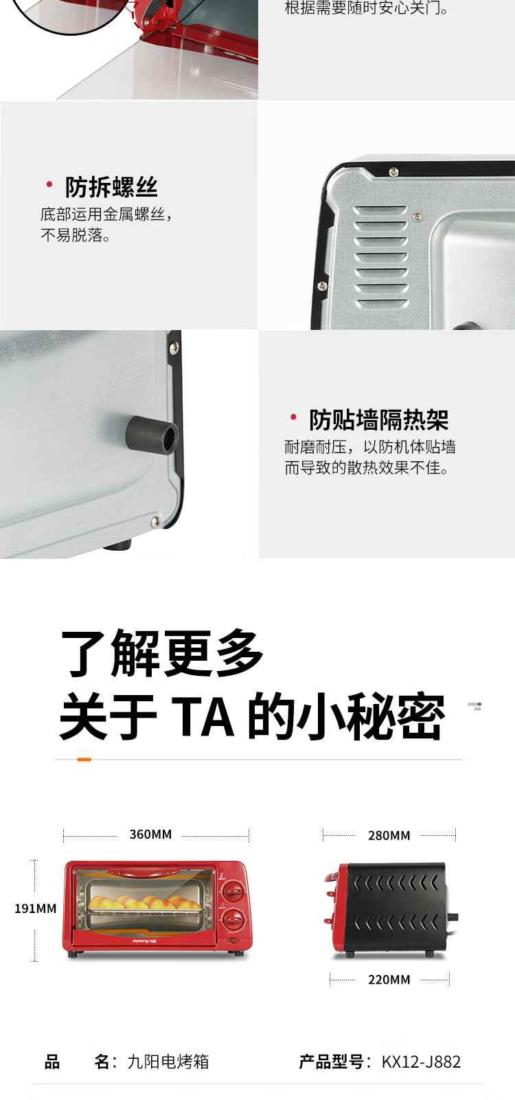 商品名称: 九阳迷你电烤箱KX12-J882 KX12-J882/台