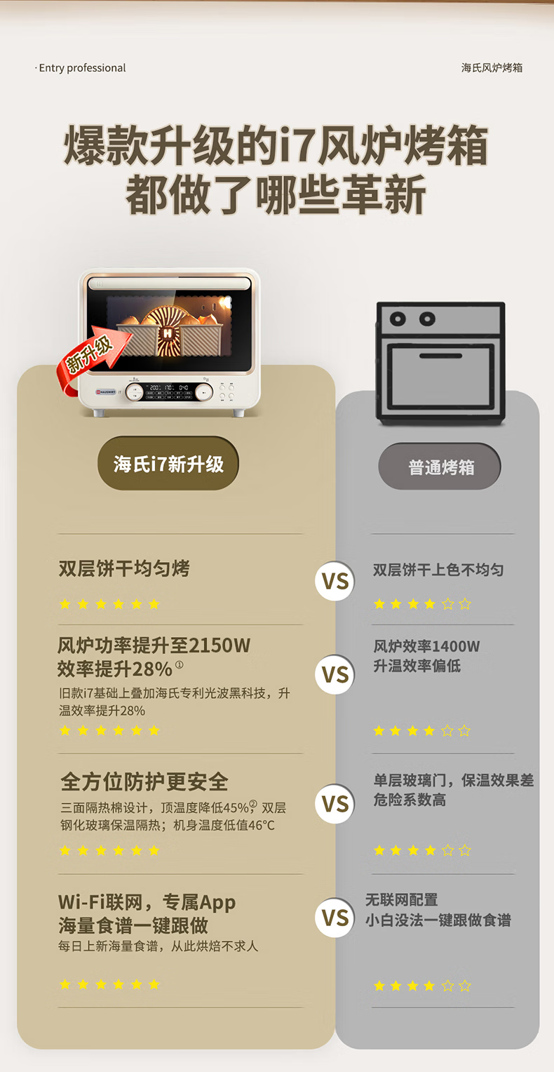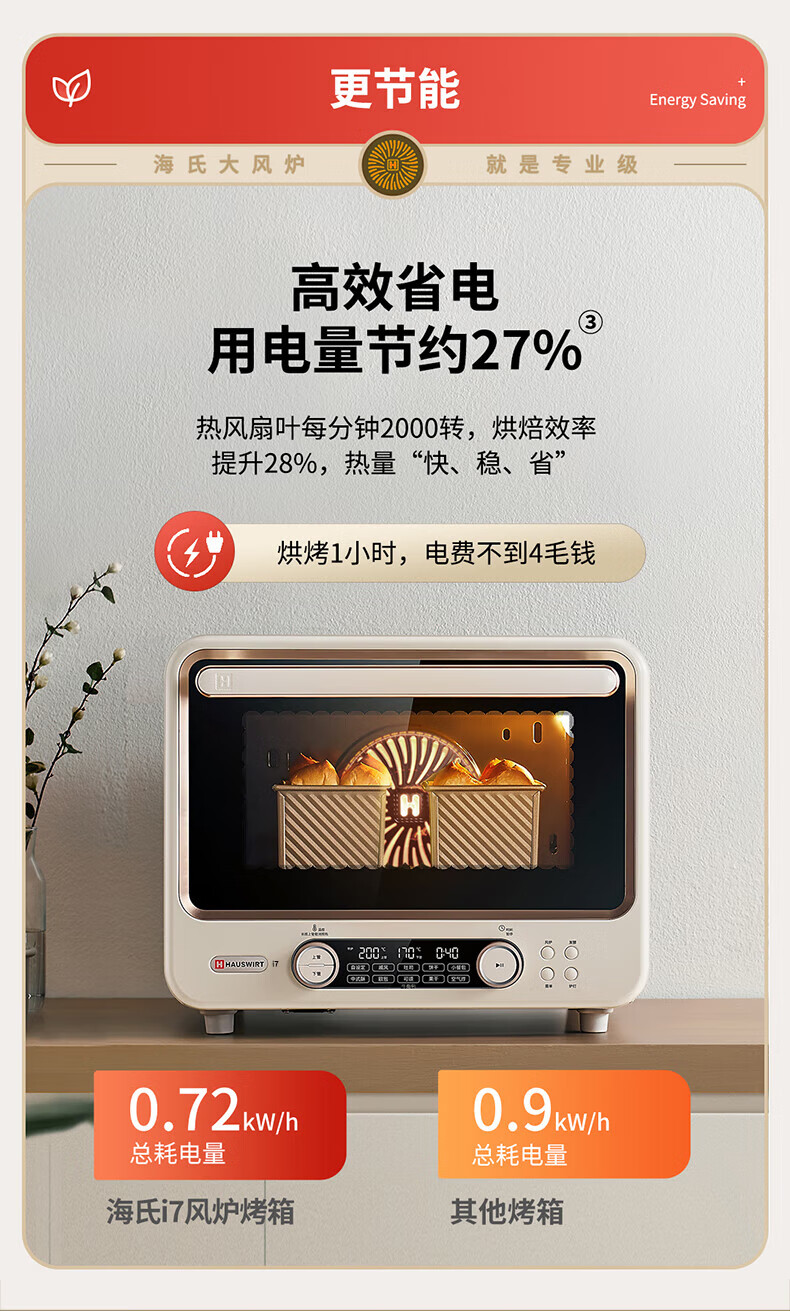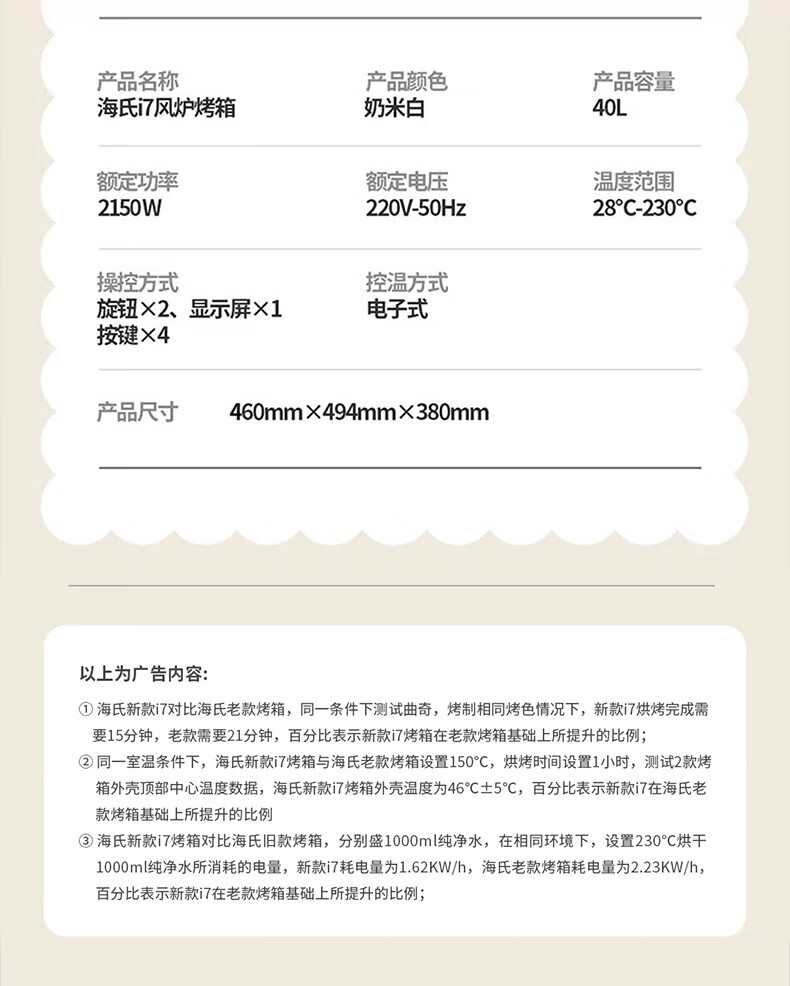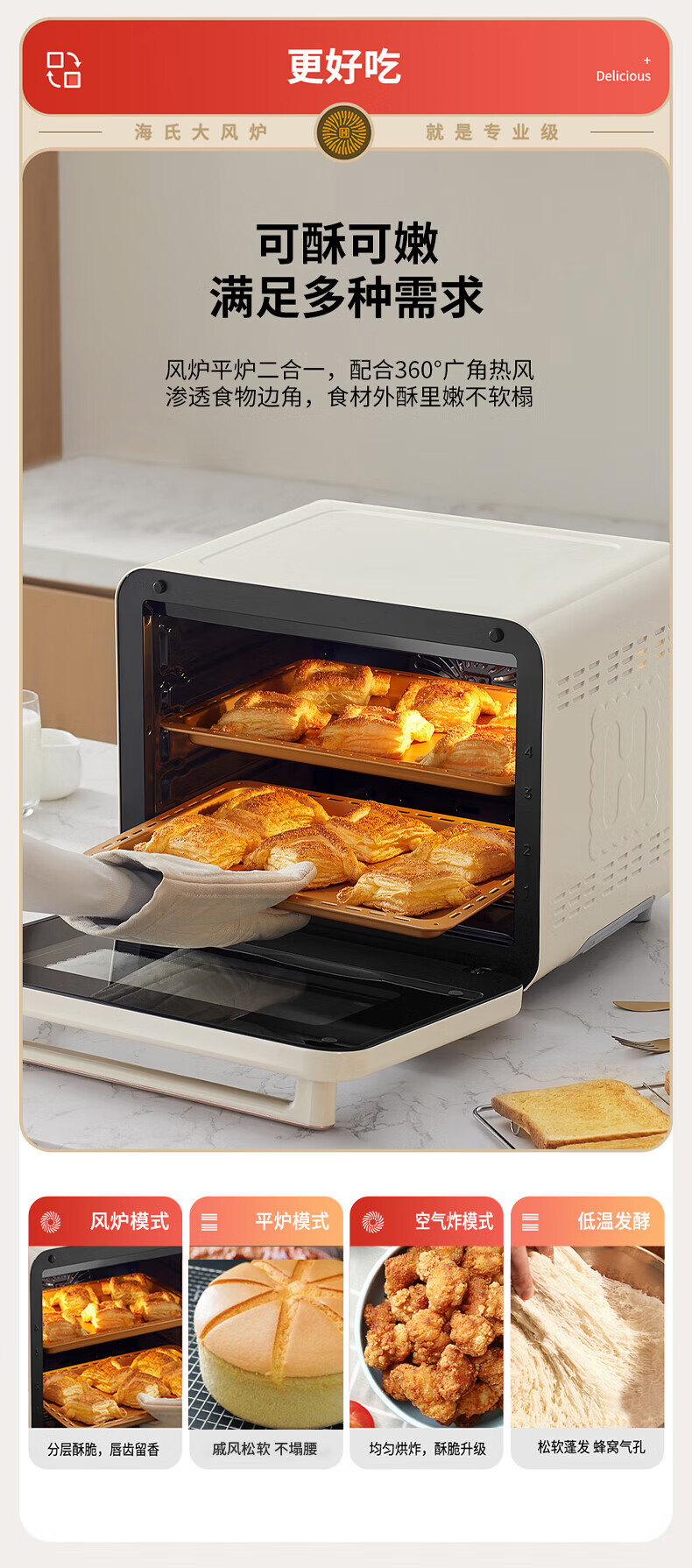 • 商品名称:海氏(Hauswirt)i7风炉电烤箱家用专业烘焙多功能大容量空气炸锅一体机升级款 米白色40L 酥烤&嫩烤双模式i7 QH i7/个