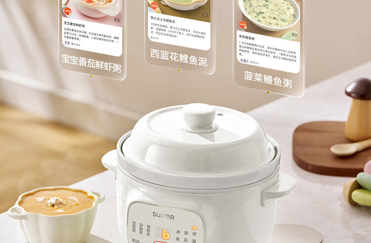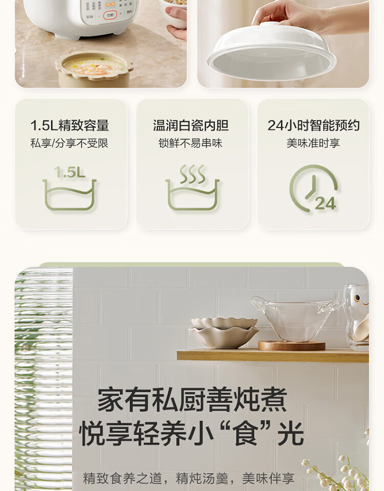 • 商品名称:苏泊尔迷你电炖锅煮粥煲汤锅白瓷炖锅1.5升小容量智能文火慢炖熬粥燕窝炖盅bb煲婴儿辅食锅DG15YC18 DG15YC85/个