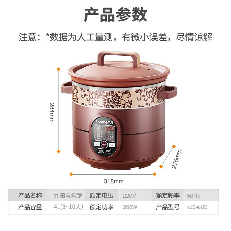 九阳(Joyoung)电炖锅 炖盅隔水炖锅 预约家用炖锅 陶瓷煲汤锅电砂锅4升 K423【企业采购】【支持一件代发】 K423/台