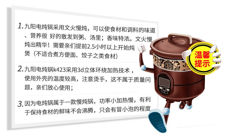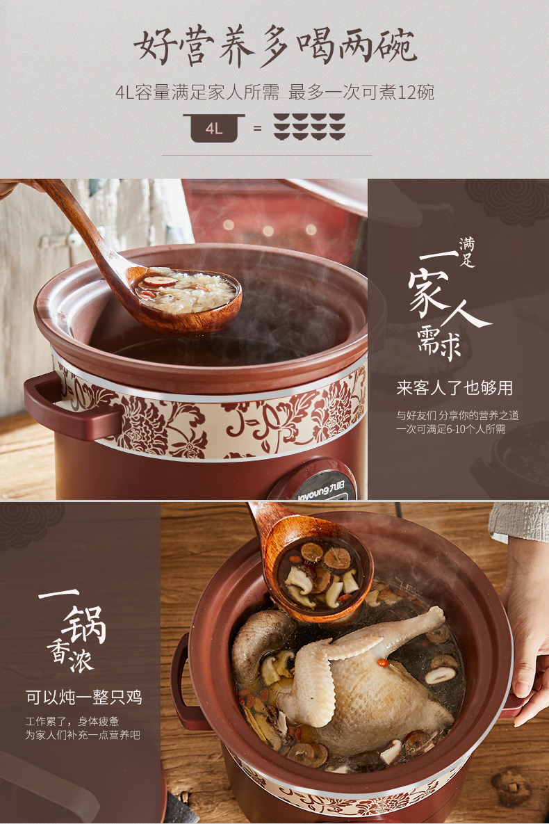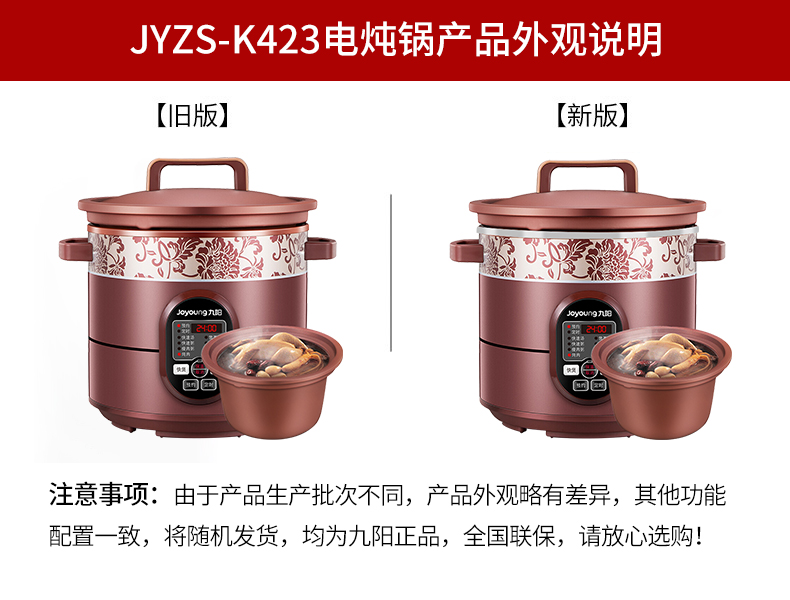 家用电器  > 厨房小电  > 电炖锅  >  九阳/Joyoung  >  九阳(Joyoung)电炖锅 炖盅隔水炖锅 预约家用炖锅 陶瓷煲汤锅电砂锅4升 K423【企业采购】【支持一件代发】 K423/台