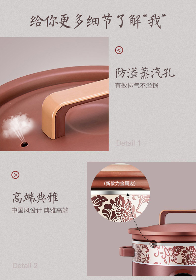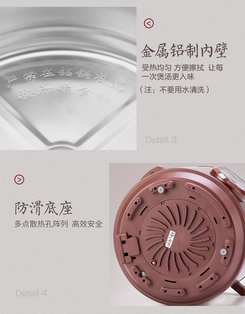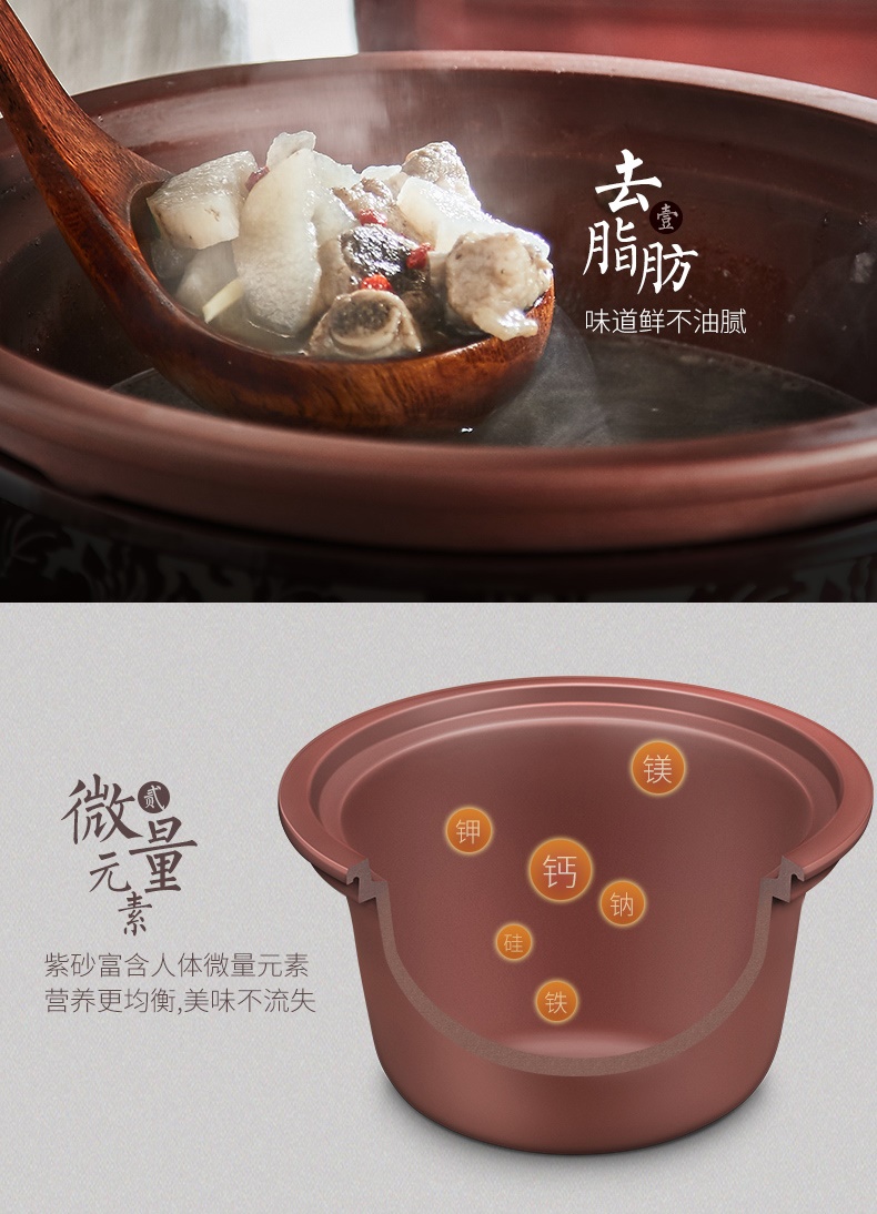 包装清单: 紫砂煲 × 1 量杯 × 1 电源线 × 1 说明书 × 1 紫砂内胆×1
