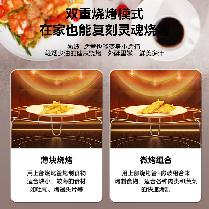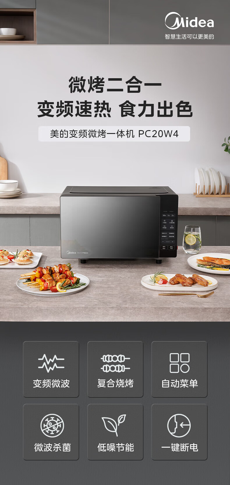 美的(Midea)20升小型家用微波炉 微烤一体机 800W速热 变频 一级能效 快速解冻 PC20W4 PC20W4/台
