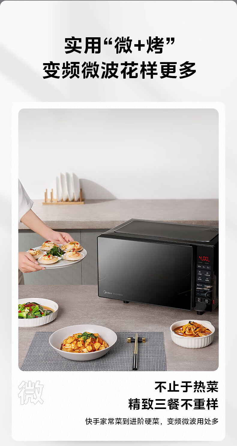 • 商品名称:美的(Midea)20升小型家用微波炉 微烤一体机 800W速热 变频 一级能效 快速解冻 PC20W4 PC20W4/台
