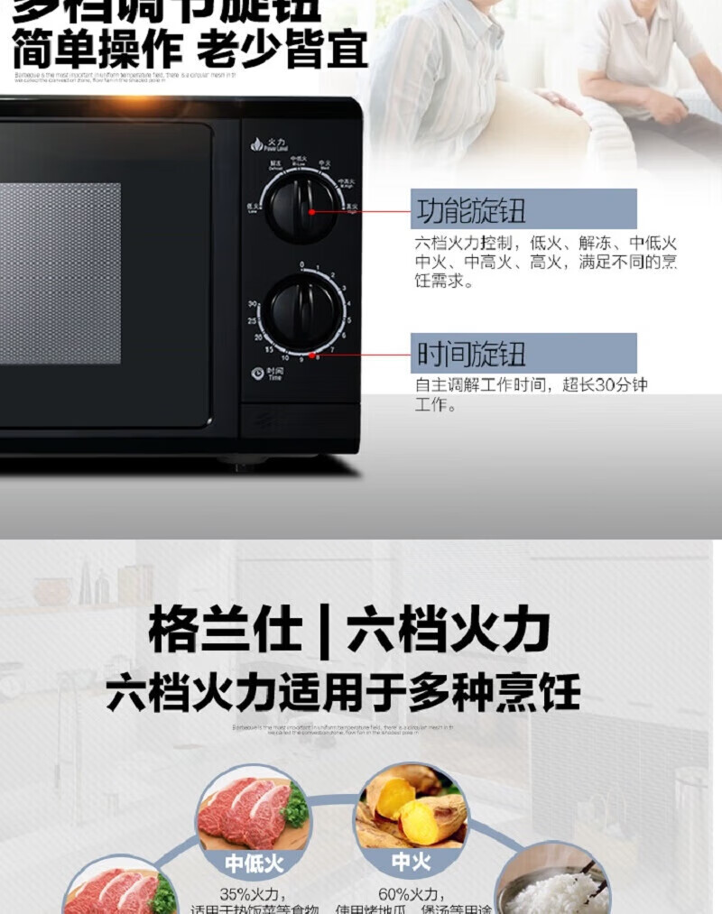 商品名称: 格兰仕(Galanz)家用型微波炉大容量涂层内胆便捷操作平板加热微波炉轻音降噪 B-G5SF23 B-G5SF23/台