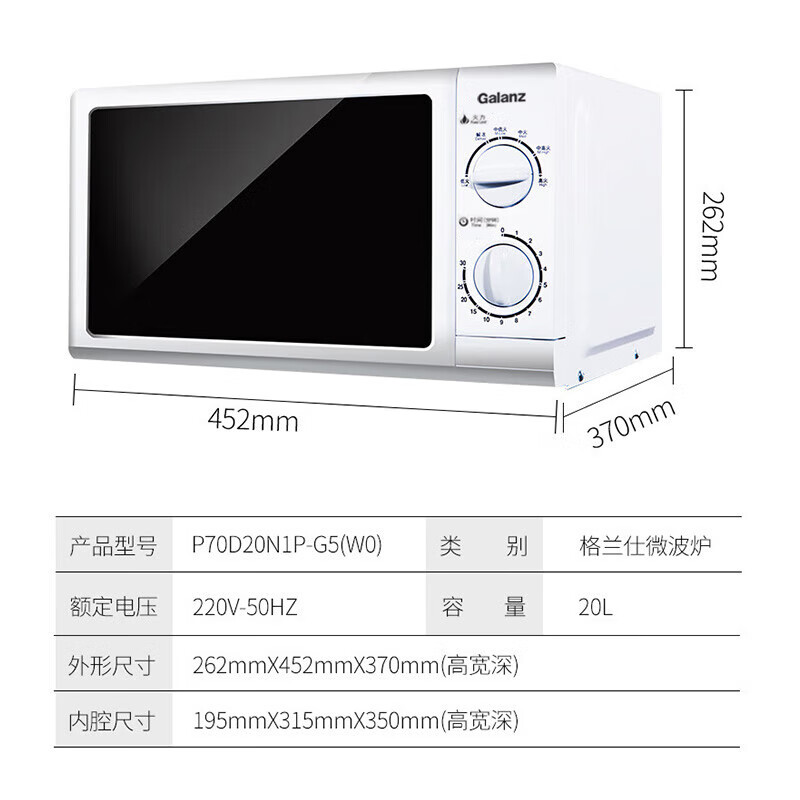 商品名称: 格兰仕(Galanz)20升家用便携式微波炉 五档火力 营养解冻 内胆易清洁 转盘式P70D20N1P-G5(W0) P70D20N1P-G5(W0)/台
