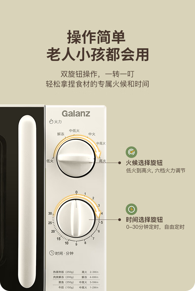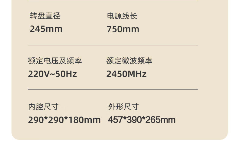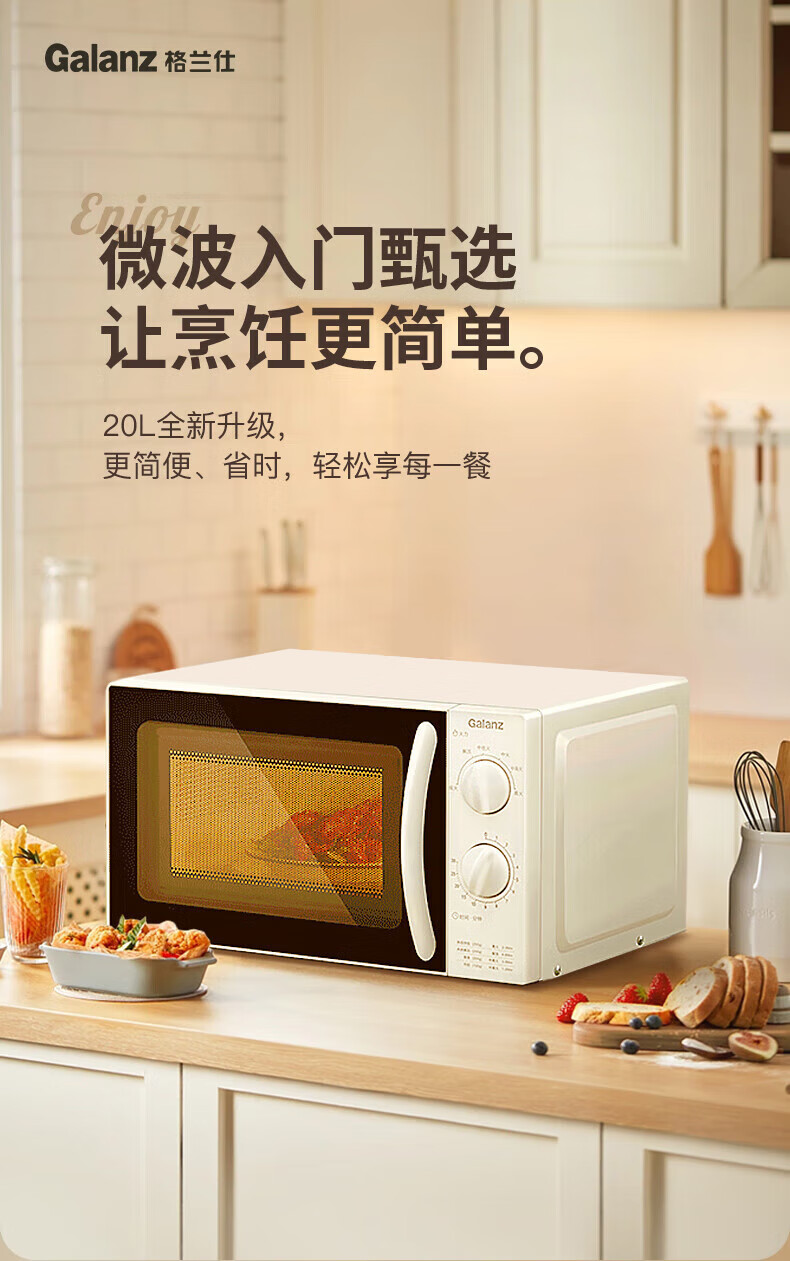 • 商品名称:格兰仕(Galanz)微波炉家用小型便捷微波炉 360°转盘加热旋钮操控易洁内胆操作简单SE(W0) P70D20N1L-SE(W0)/台