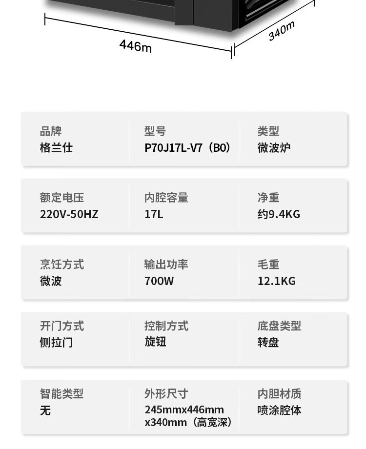家用电器  > 厨房小电  > 微波炉  >  格兰仕/Galanz  >  格兰仕(Galanz)微波炉 6档火力调节 旋钮简易操作 经典迷你款 家用微波炉P70J17L-V7(B0) P70J17L-V7(B0)/台