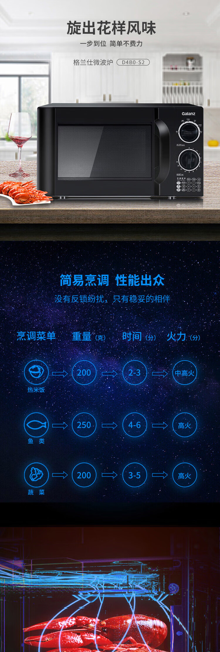 商品名称: 格兰仕(Galanz)微波炉20升 快捷家用 六档火力旋钮 易清洁 小型迷你微波炉 D4B0-S2 D4B0-S2/台