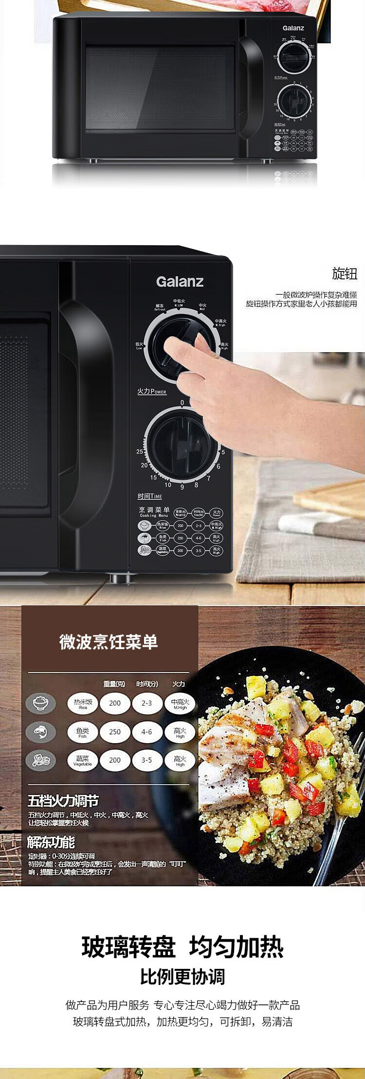 • 商品名称:格兰仕(Galanz)微波炉20升 快捷家用 六档火力旋钮 易清洁 小型迷你微波炉 D4B0-S2 D4B0-S2/台