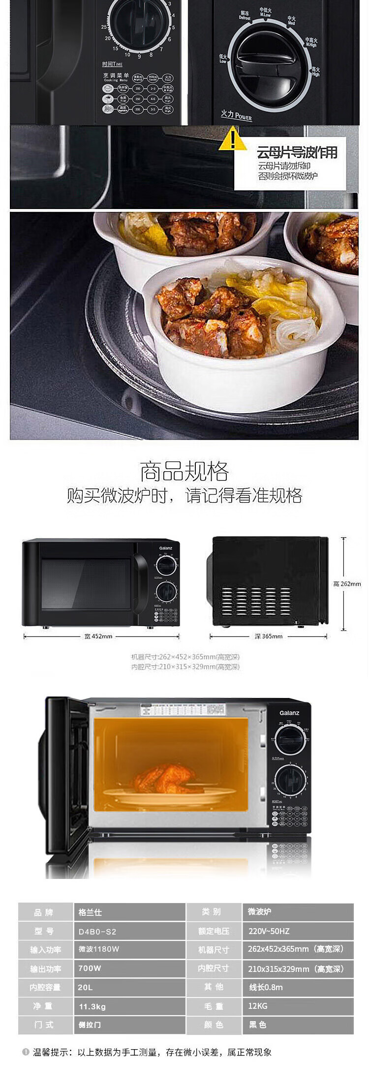 家用电器  > 厨房小电  > 微波炉  >  格兰仕/Galanz  >  格兰仕(Galanz)微波炉20升 快捷家用 六档火力旋钮 易清洁 小型迷你微波炉 D4B0-S2 D4B0-S2/台