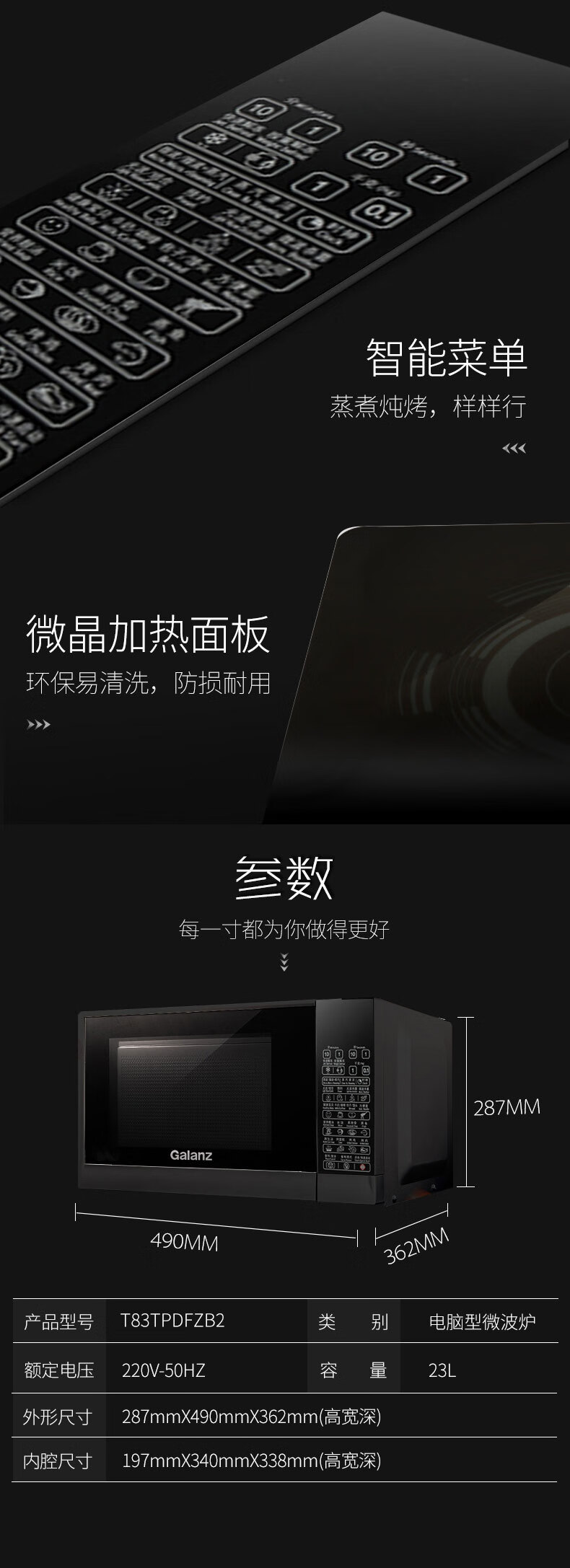 • 商品名称:格兰仕家用微波炉T83TPDFZB2 T83TPDFZB2/台