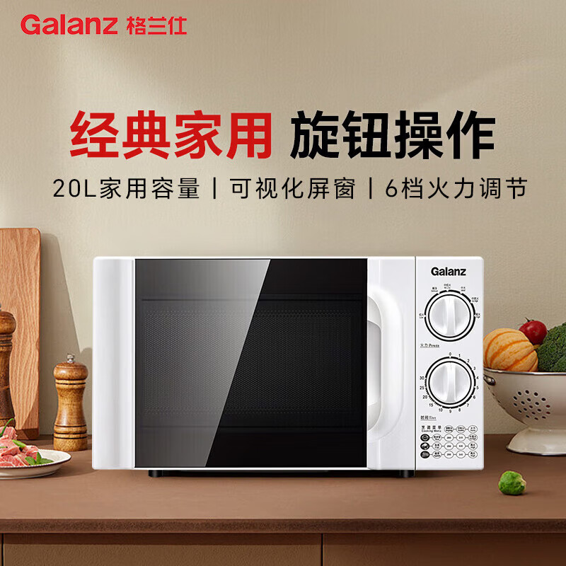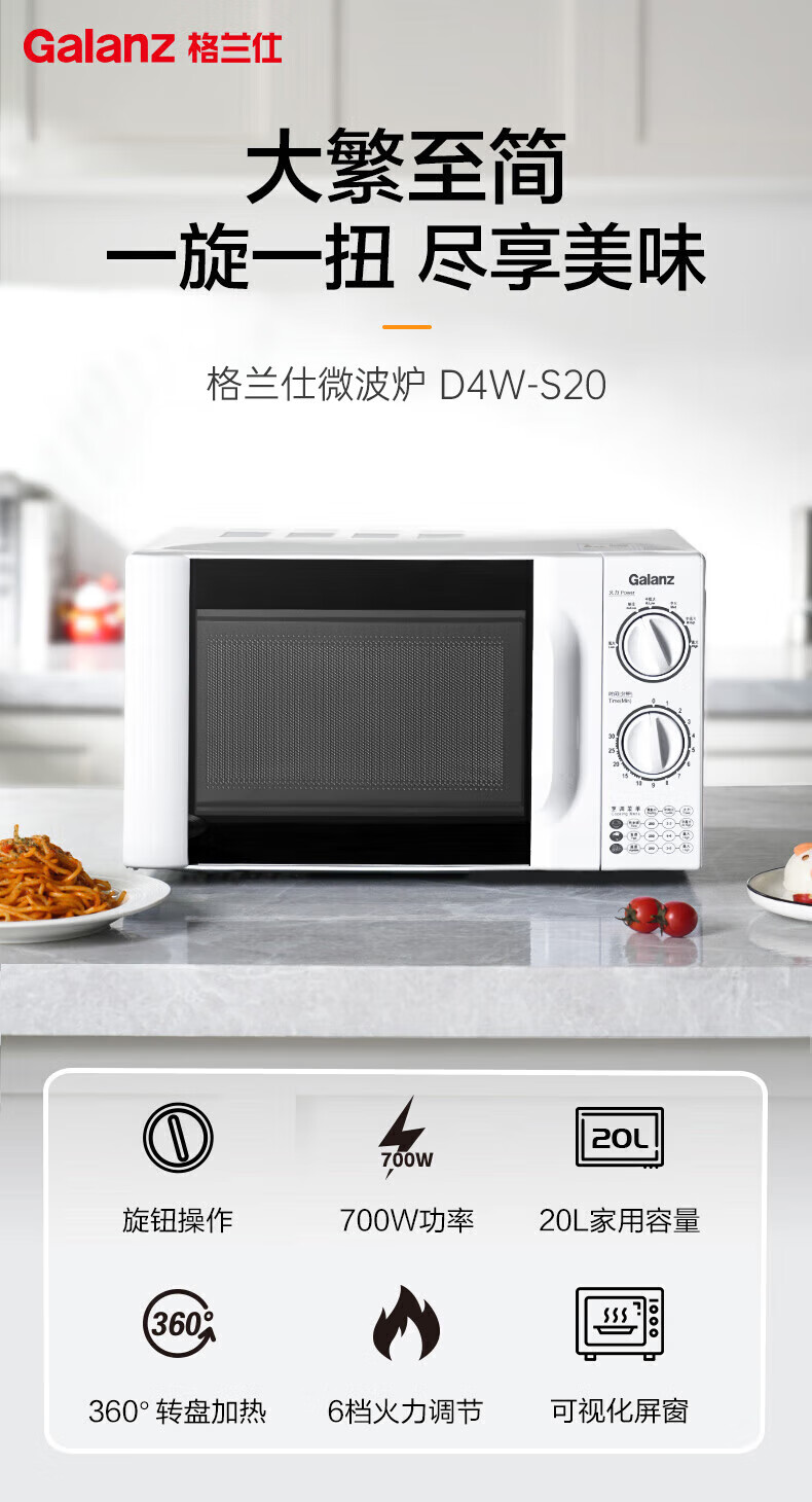 家用电器  > 厨房小电  > 微波炉  >  格兰仕/Galanz  >  格兰仕(Galanz)微波炉20升 快捷家用 六档火力旋钮 易清洁 小型迷你微波炉D4W-S20 D4W-S20/台