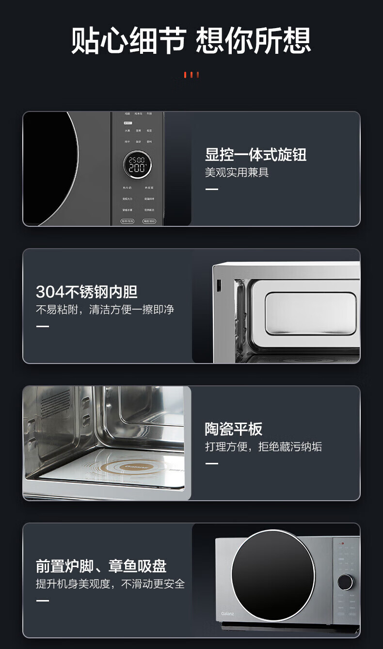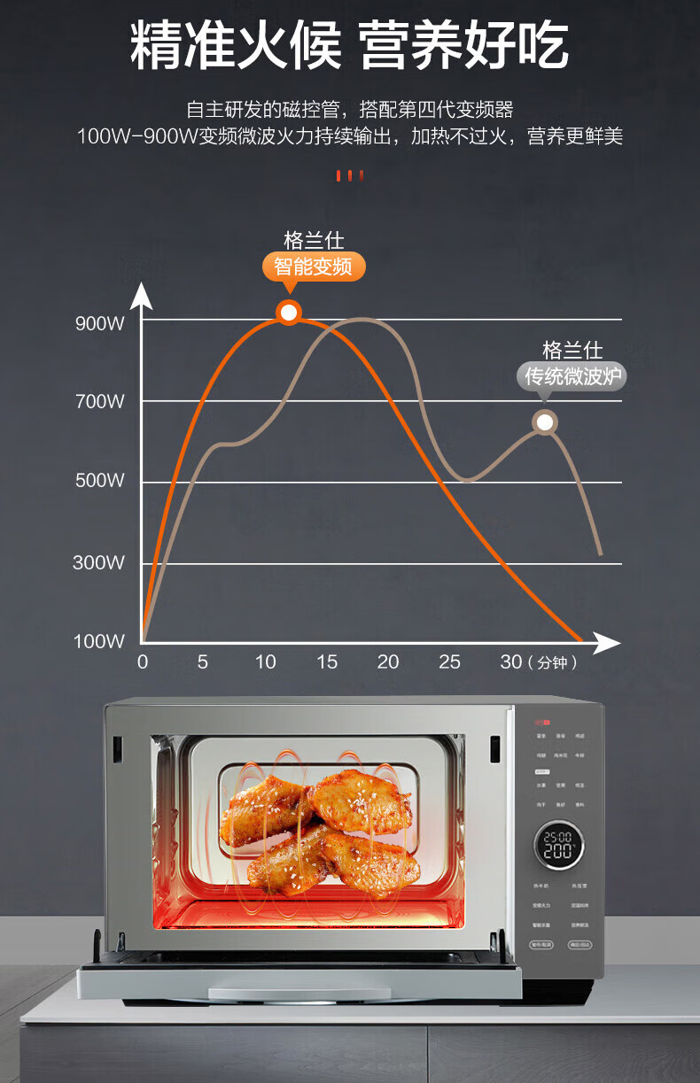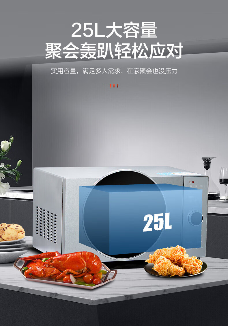 格兰仕(Galanz)微波炉 25升大容量900w大功率不锈钢内胆空气炸微波炉 黑色 D90F25MSXLDV-DR(B0) 企业业务 D90F25MSXLDV-DR(B0)/台
