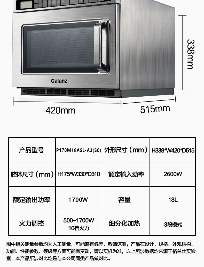 • 商品名称:格兰仕(Galanz)微波炉 P170M18ASL-A3 (台) P170M18ASL-A3/台