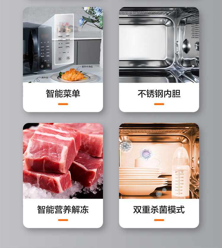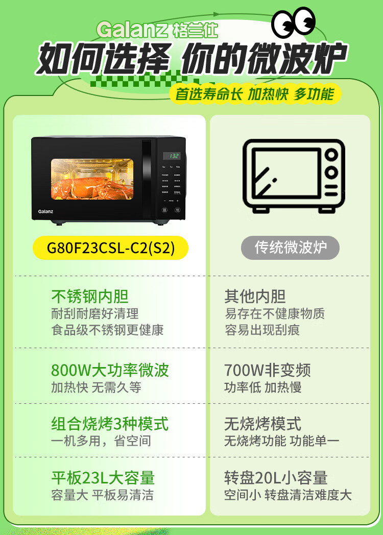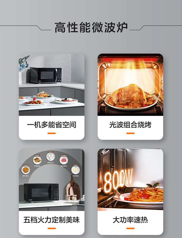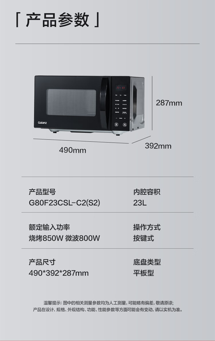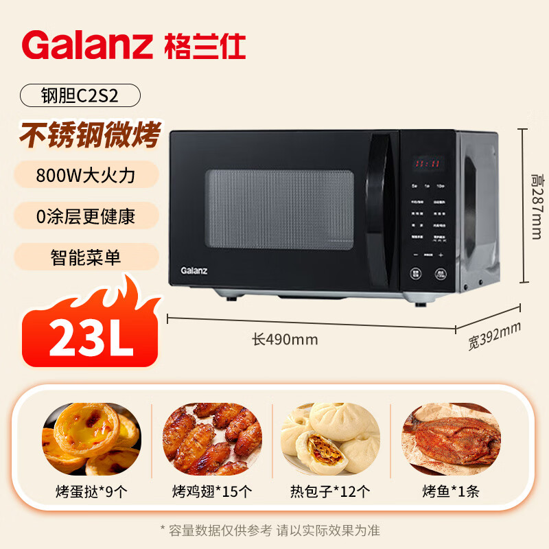 • 商品名称:格兰仕(Galanz)微波炉烤箱一体机不锈钢内胆23升800瓦速热营养解冻智能微烤一体机C2(S2) G80F23CSL-C2(S2)/台