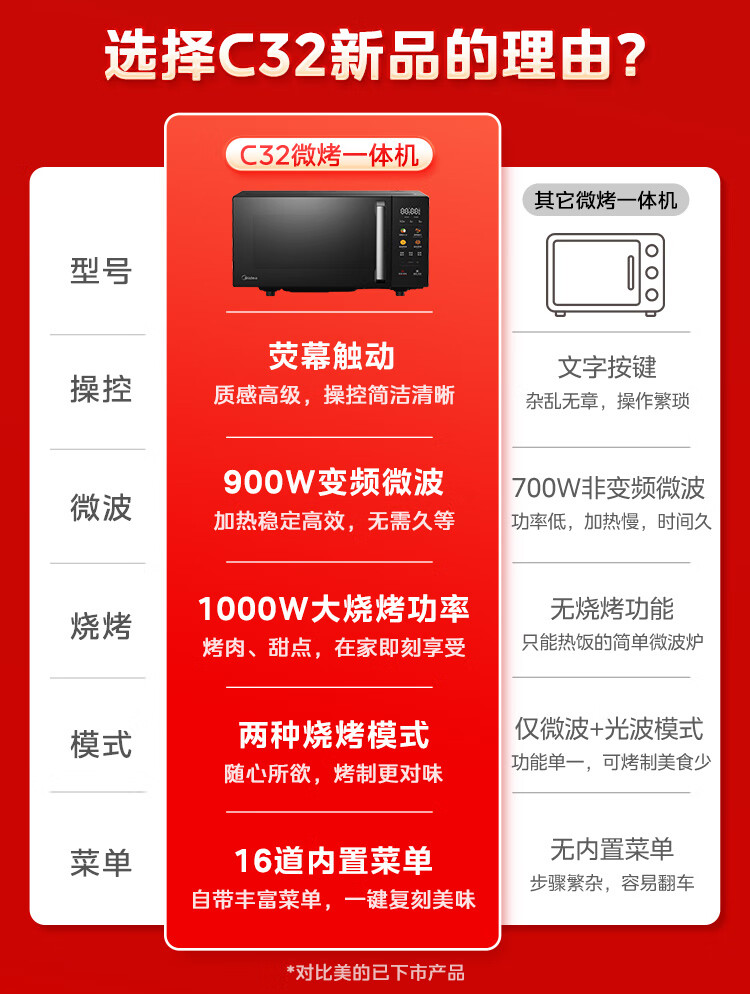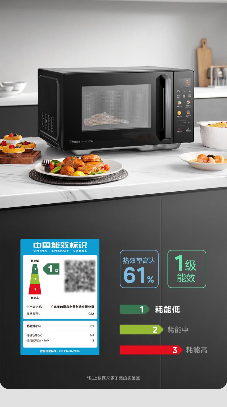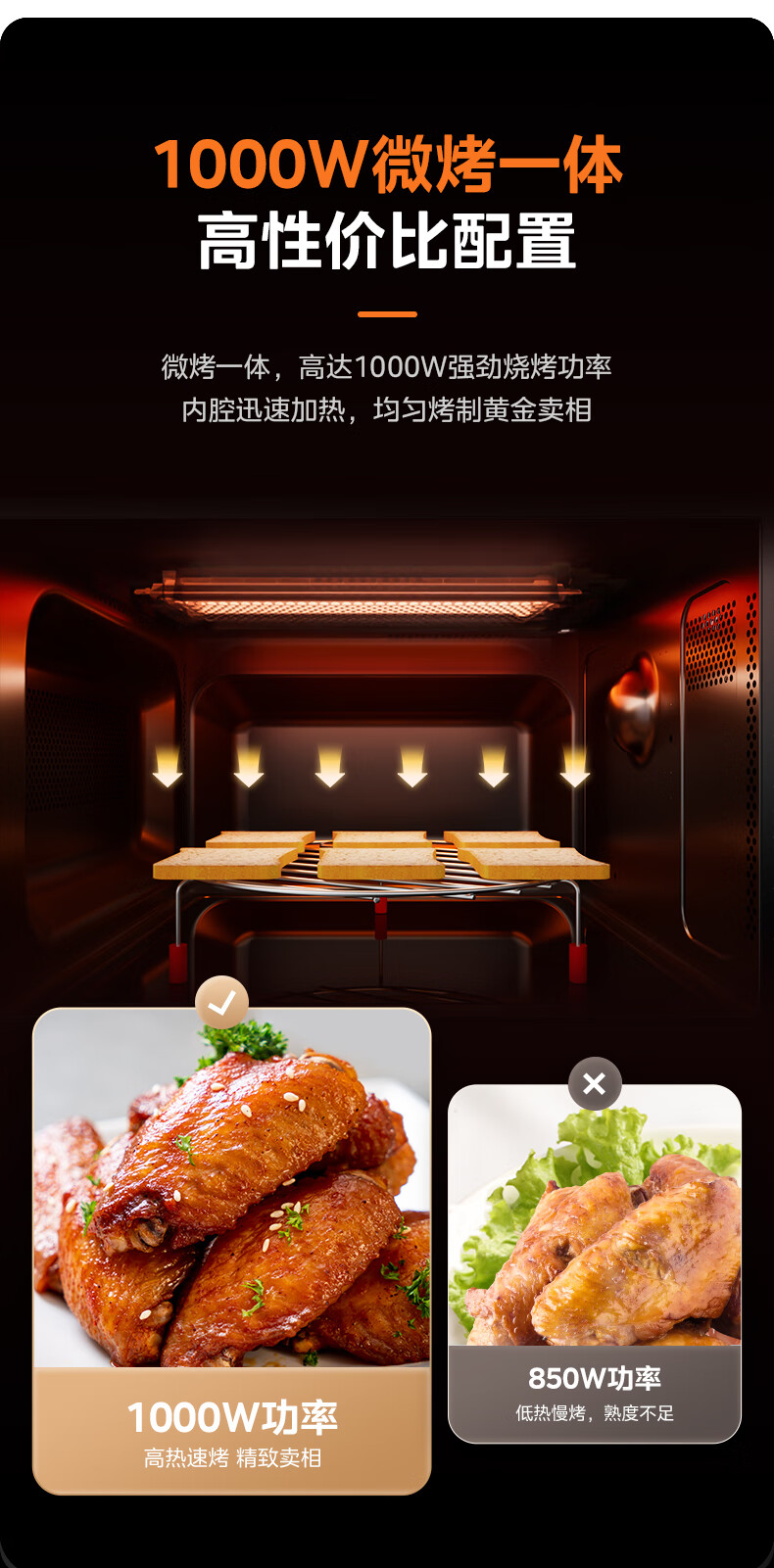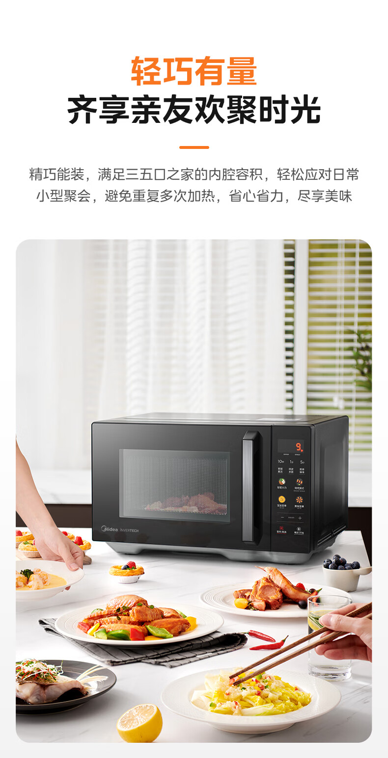 • 商品名称:美的(Midea)微碳微波炉烤箱一体机900w微波1000w烧烤平板光波速热23L容量变频臻彩荧幕 (C32) C32/台